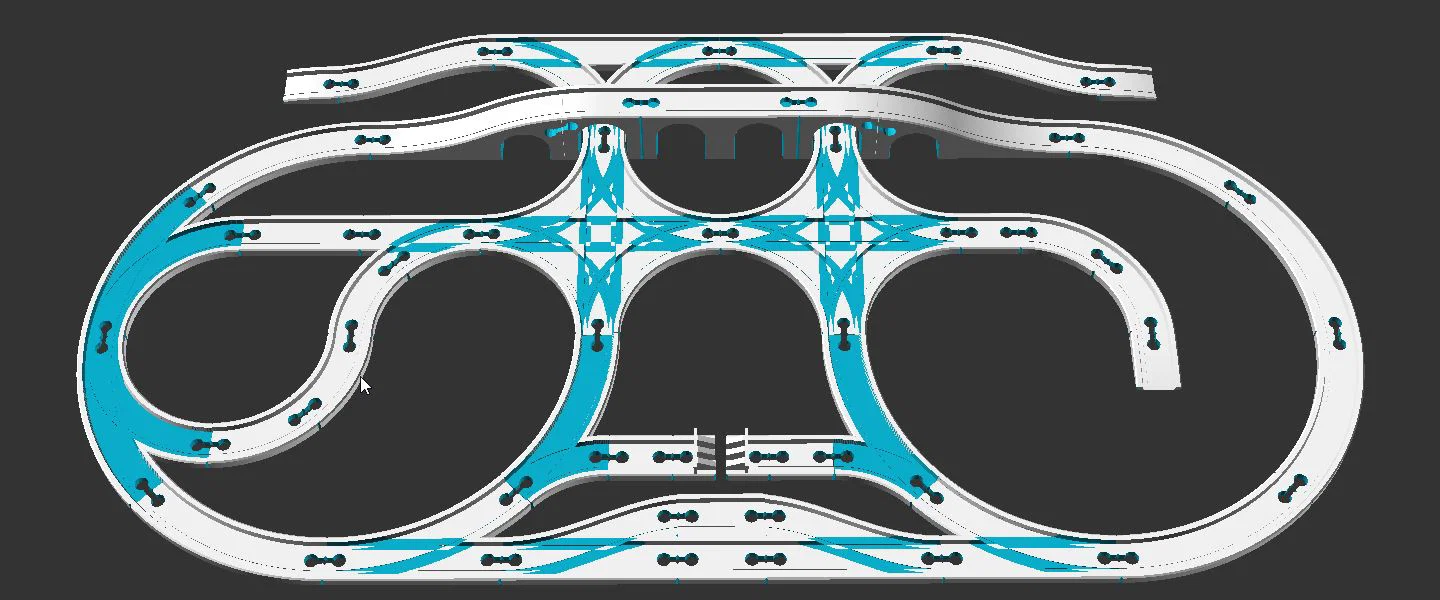 Bộ đường ray kiểu Brio dành cho tàu Thomas Minis, dựng bằng OpenSCAD. Có nhiều mẫu track Brio hiện đại và vài chi tiết không chuẩn; có bản full size và bản tách nhỏ để phù hợp bàn in 120x120.