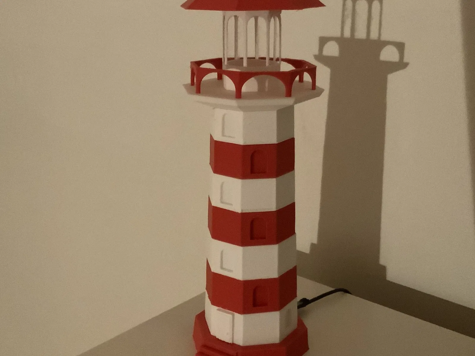 Mẫu đèn hải đăng này với ánh sáng LED rất dễ lắp ráp, thú vị khi in. Việc in từng phần riêng lẻ mất thời gian, nhưng thật xứng đáng. Vì vậy, hãy vui vẻ kết hợp các filament màu sắc khác nhau để tạo ra một chiếc đèn hải đăng mô-đun độc đáo. Khi đã in xong, bạn có thể xoay từng tầng và thay đổi hướng của chúng, tạo ra một mẫu mới (đặc biệt cho các cửa sổ). Xung quanh cột của đế, quấn một dải LED và dán nó khi cần, sau đó cắm điện. Một dải dài một mét là rất tốt, và với một điều khiển từ xa, thì còn tuyệt hơn khi bạn có thể thay đổi màu sắc của ánh sáng mà không cần di chuyển.
