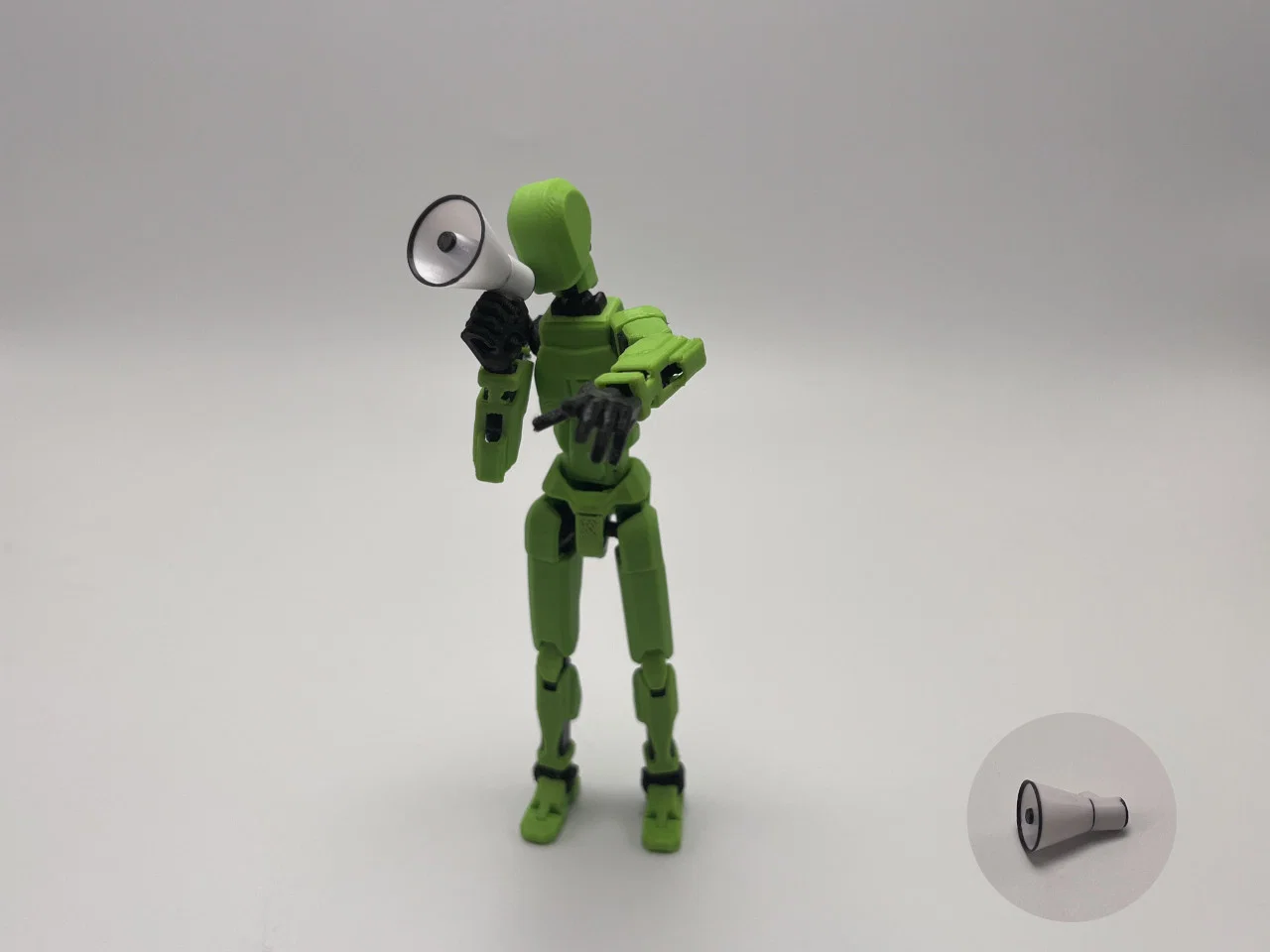 Megaphone đơn giản dành cho DUMMY13 (DUMMY 13 Beta). In bằng file 3MF với Bambu Studio/Orca Slicer, gợi ý layer height ~0.16mm, có brim và support. Chà nhám tay cầm rồi gắn vừa vào tay DUMMY 13.