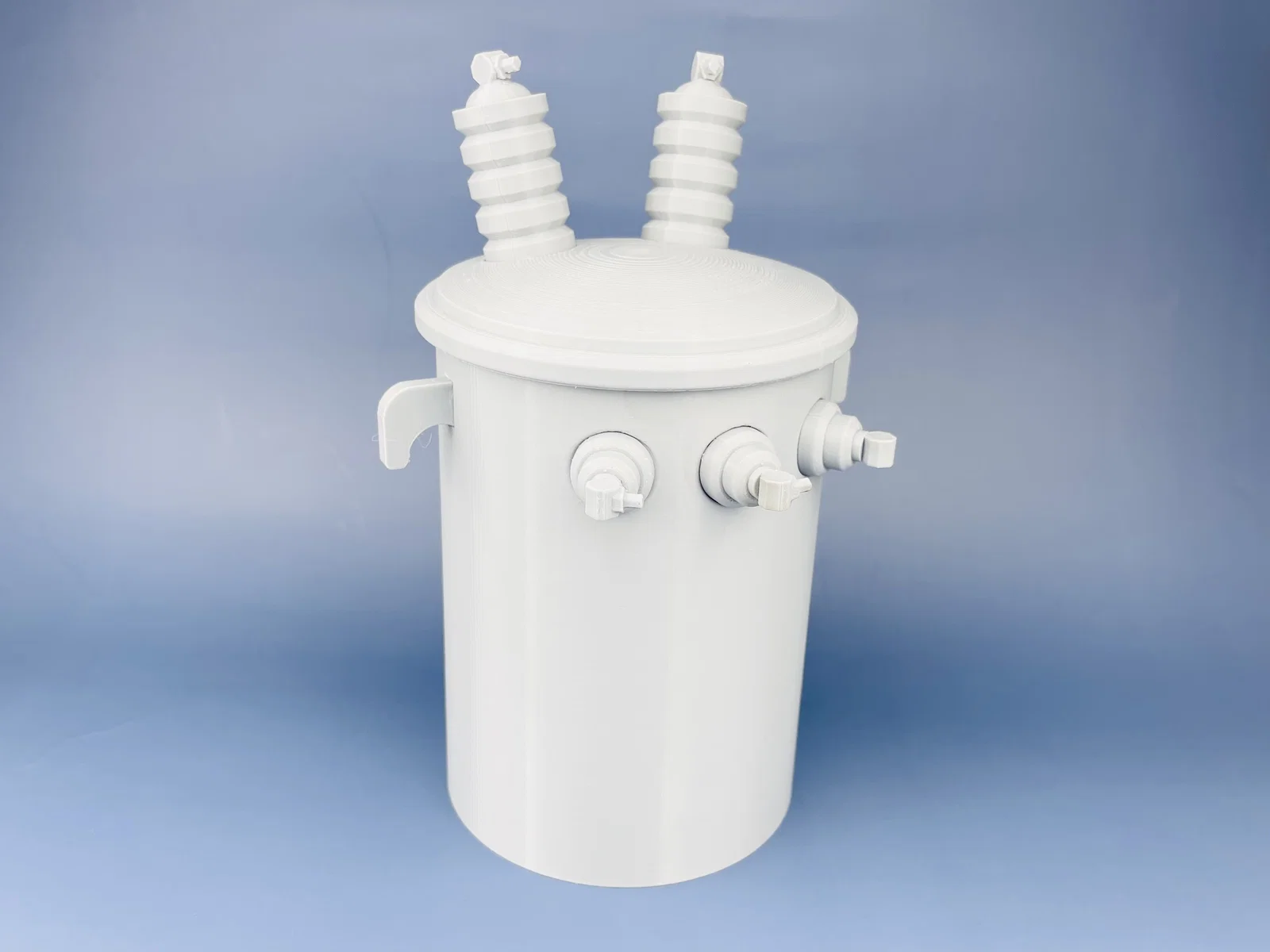 Mô hình Pole Mounted Transformer Container dùng làm đồ trang trí bàn làm việc. Thiết kế in theo từng mảnh giúp in nhanh và dễ hơn; khi lắp ráp nên chà nhám trước rồi dán Super Glue để chắc chắn.