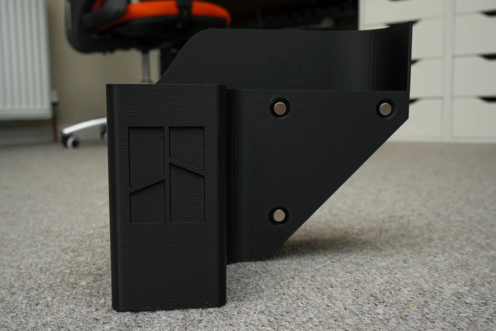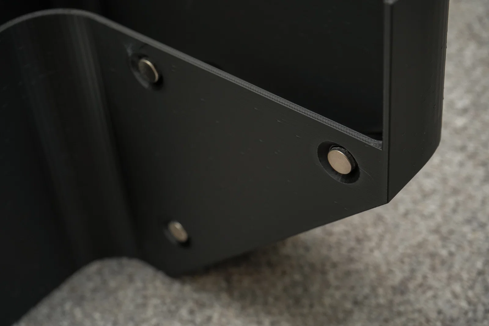 Bản remix này có khá nhiều cập nhật so với phiên bản gốc, mình ghi chi tiết đầy đủ ở bên dưới. Tóm lại là: in nhanh hơn và ít tốn vật liệu hơn, nhưng dự kiến sẽ chắc hơn và hoạt động ổn hơn nhờ vài thay đổi nhỏ trong tổng thể hình dáng. Bản mới cũng hỗ trợ gắn nam châm (tuỳ chọn) để bám chắc vào máy in. Dùng một giọt keo CA để cố định nam châm.