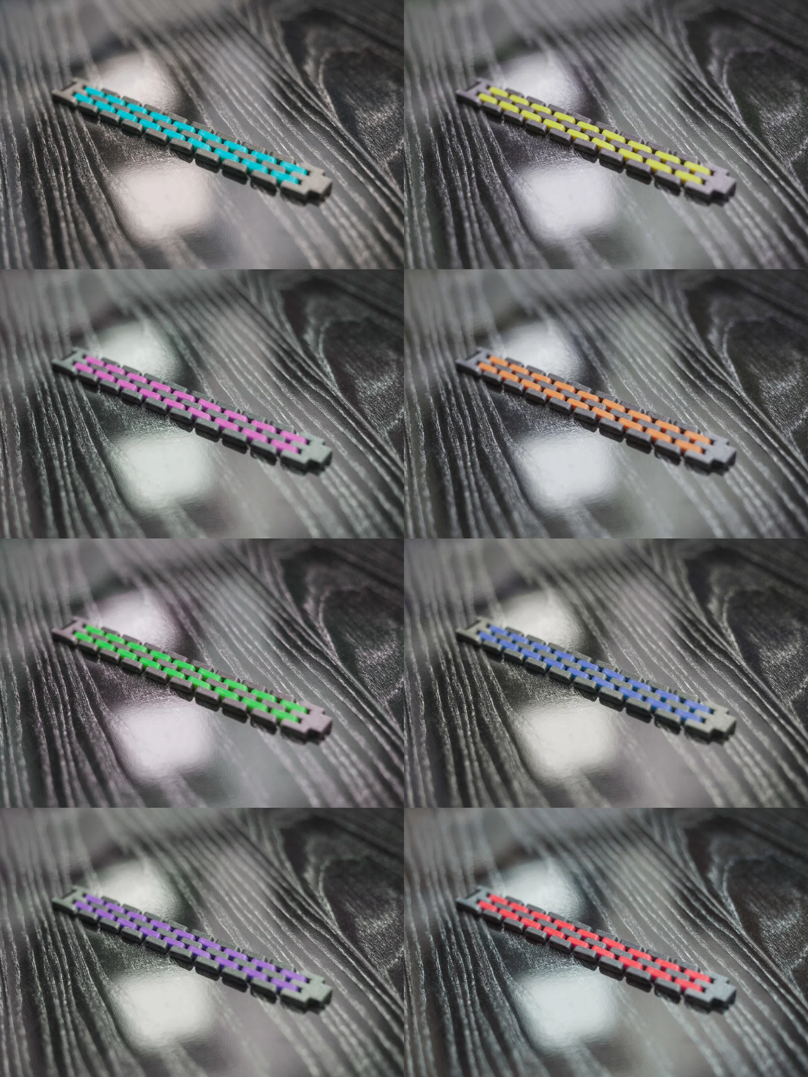 Các lỗ trên miếng Center được làm hơi lớn hơn so với các miếng Left/Right và Clamp để vòng tay có độ linh hoạt.