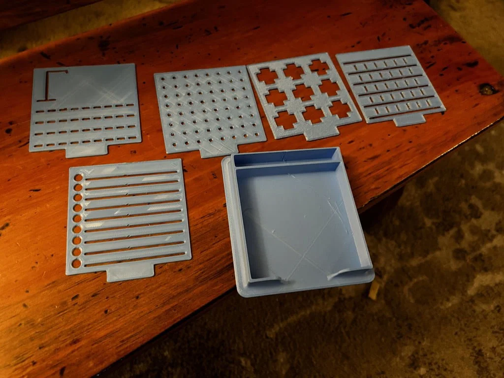 Để đạt kết quả tốt nhất, mình khuyên các bạn nên in ở độ phân giải 0.2mm và bật tính năng ironing trong slicer. Ngoài ra, hãy chỉnh Z-seam về góc nhọn nhất. Bạn nhớ đợi cho stencil nguội hẳn rồi mới gỡ ra để tránh bị cong vênh nhé. Khe cắm trên khay đựng đã được làm rộng hơn để bạn có thể cất giữ cả năm chiếc stencil này.