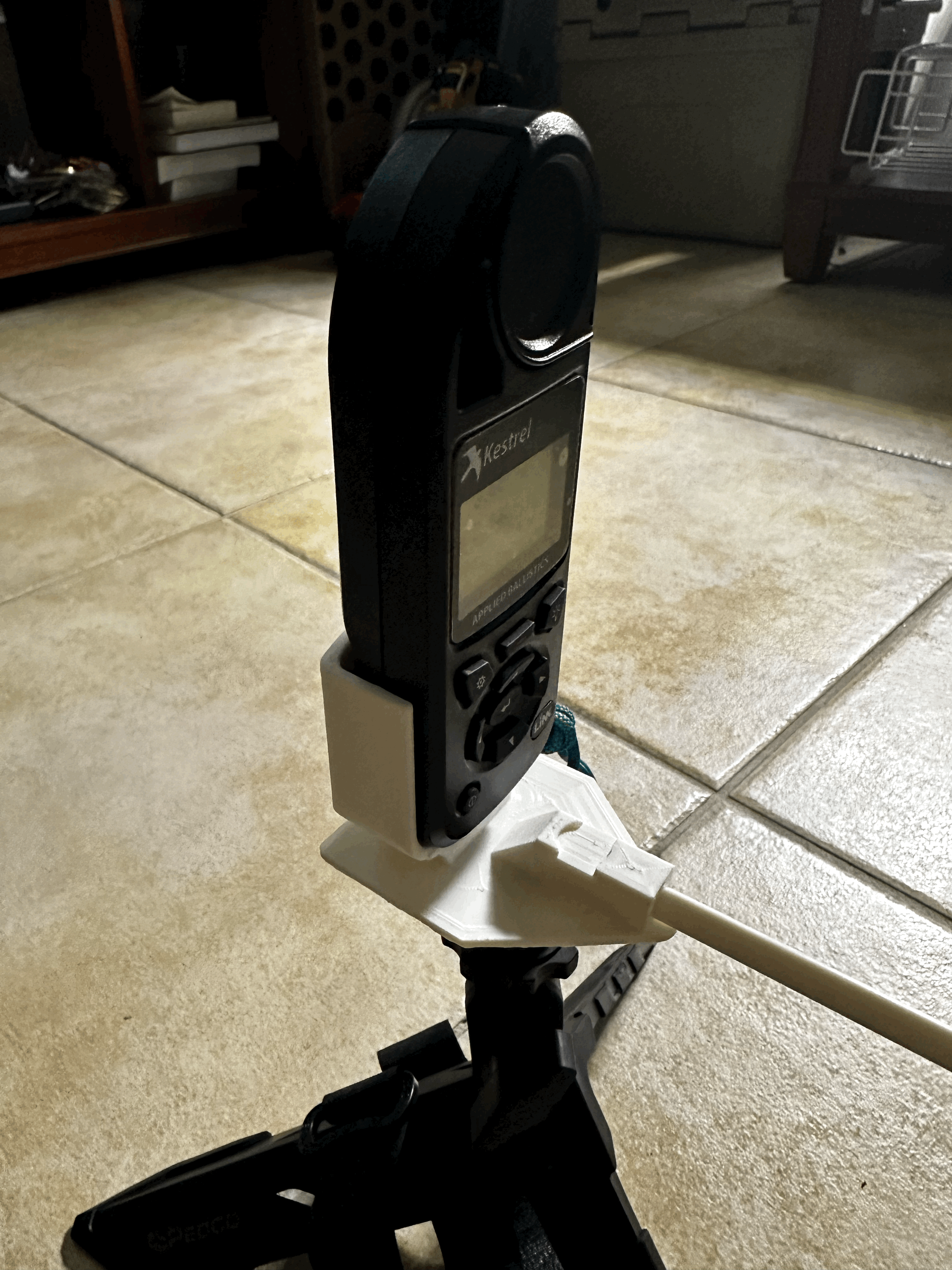 Dùng để gắn Kestrel 5700 lên tripod để canh chỉnh hướng gió liên tục. Kestrel trượt vào ngàm giữ và được giữ chắc chắn. Bên dưới có một lỗ để luồn dây, đúng vị trí điểm móc/neo trên Kestrel. Mẫu này dùng vòng bi 608 2RS.