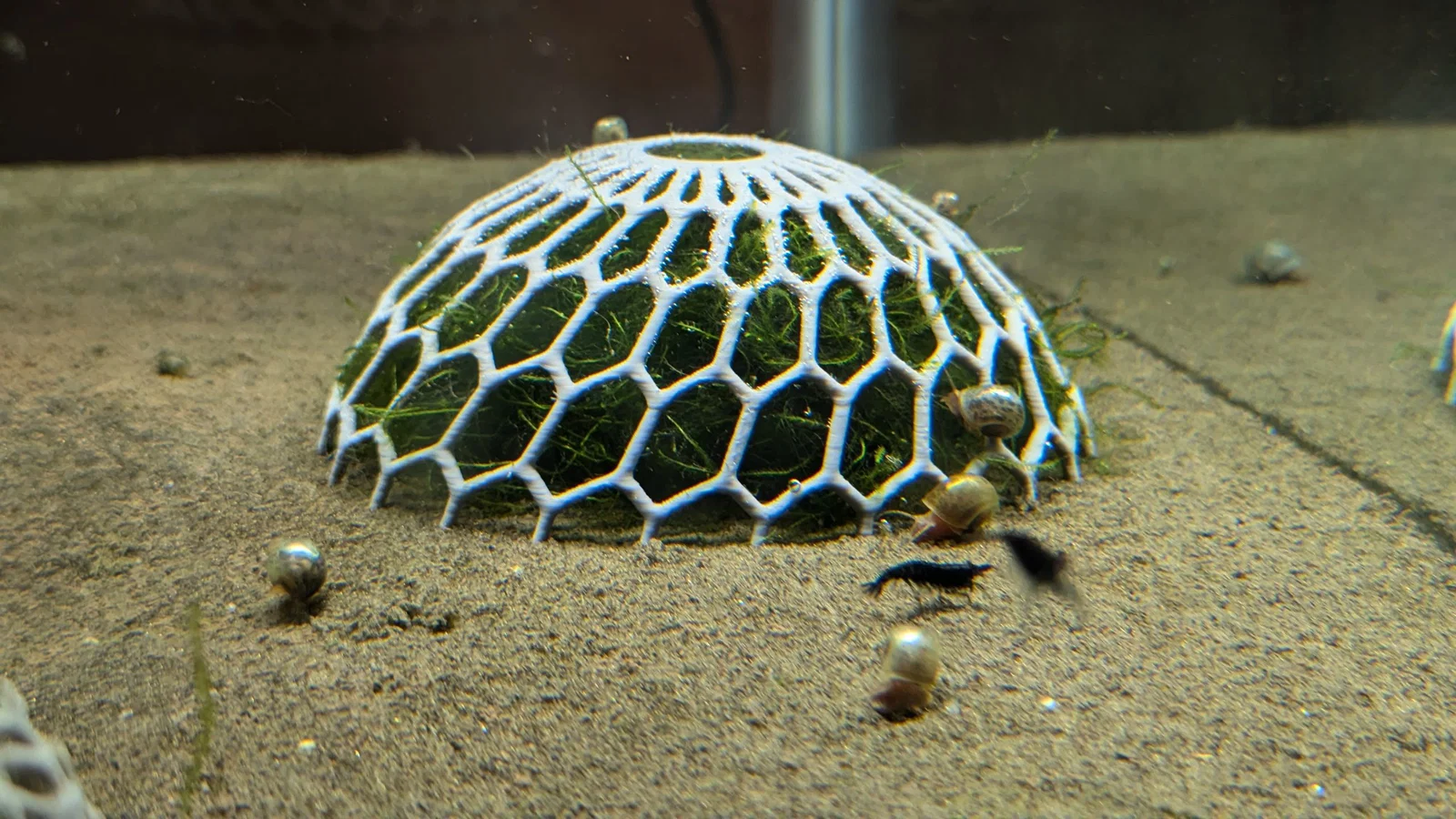 Nếu bạn là một người yêu thích chơi hồ thủy sinh, đặc biệt là những dòng rêu hoặc cây tiền cảnh nhỏ, chắc chắn bạn sẽ hiểu nỗi khổ khi chúng cứ bị cá hoặc dòng nước làm xáo trộn. Mẫu vòm lưới (Aquarium Moss Dome) này chính là giải pháp đơn giản nhưng cực kỳ hiệu quả để cố định và bảo vệ các loại cây nhỏ trong hồ của bạn. Với thiết kế dạng vòm lưới lục giác thông minh, nó không chỉ giúp giữ rêu nằm yên một chỗ mà còn tạo ra một không gian trú ẩn an toàn, xinh xắn cho tép hoặc các loài cá nhỏ.