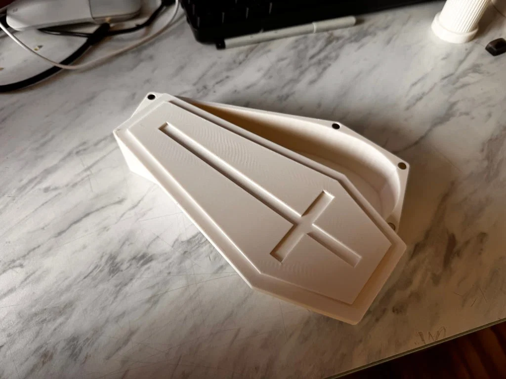 Eternal Rest Pencil Case là hộp/khay giữ bút kiểu “ngôi mộ” độc đáo, vừa để cất bút vừa làm điểm nhấn trên bàn làm việc. Kích thước 196×95×35 mm, cần nam châm D6*2mm để lắp ráp.