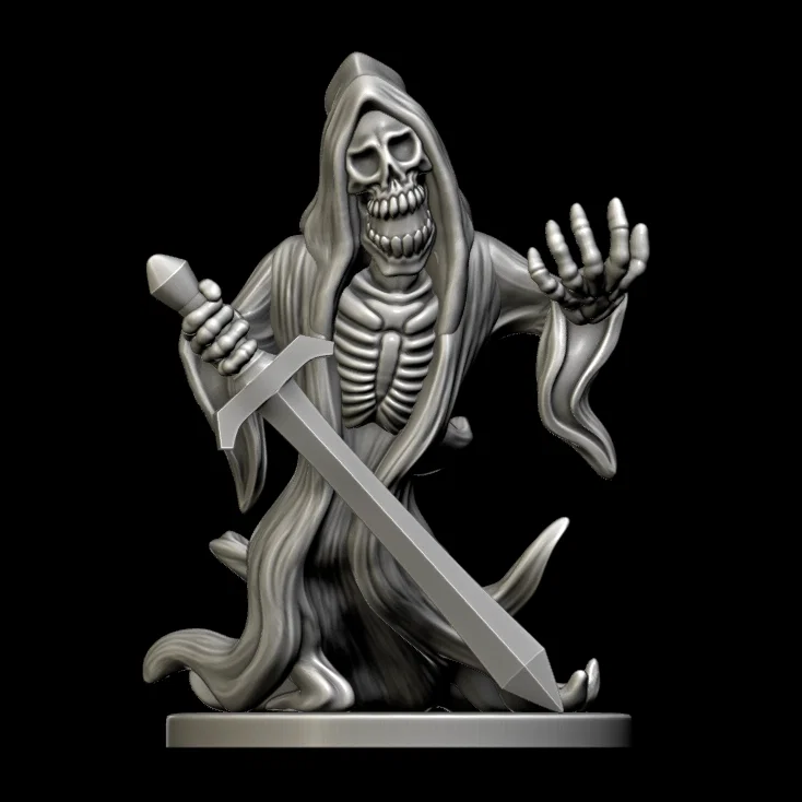 Wraith ma mị tỉ lệ 28mm cho tabletop/RPG như D&D, Pathfinder. Scale vừa đế tròn 25.4mm (không kèm). Nhiều chi tiết mảnh nên hợp in resin; có bản lắp sẵn và bản tách tay/kiếm, kèm file .CTB support.