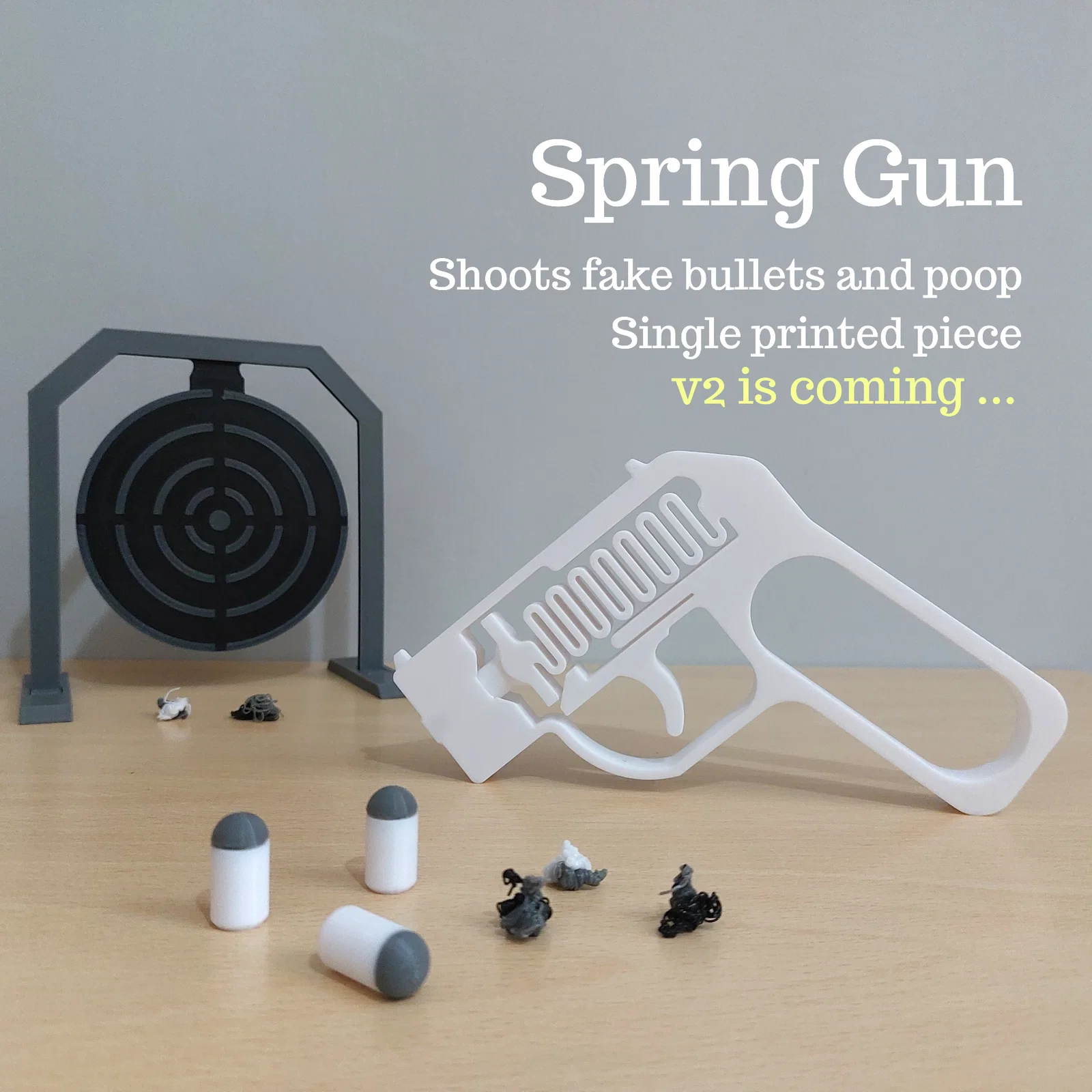 Spring Gun - Shoots fake bullets and poop