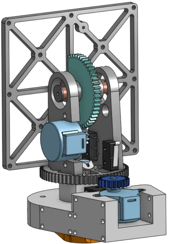 Một antenna tracker rất đơn giản dùng động cơ bước 28BYJ-48 để theo dõi (tracking). Do mấy motor này khá yếu nên không phải lựa chọn tối ưu, nhưng vẫn chạy được. Tracker có sẵn adapter để gắn lên tripod. Đây chỉ là phần thân chính (không có khoang chứa electronics). Để đỡ được cả trục dọc và trục ngang, cần 2 vòng bi 608zz (tổng cộng 4 cái).