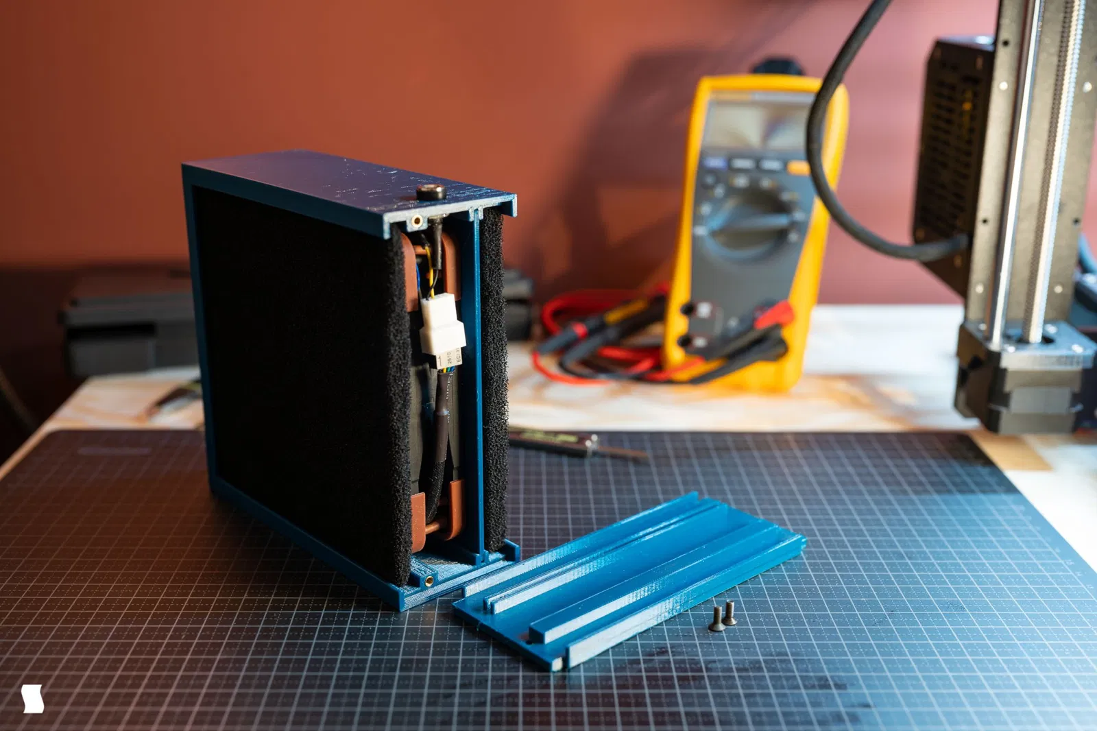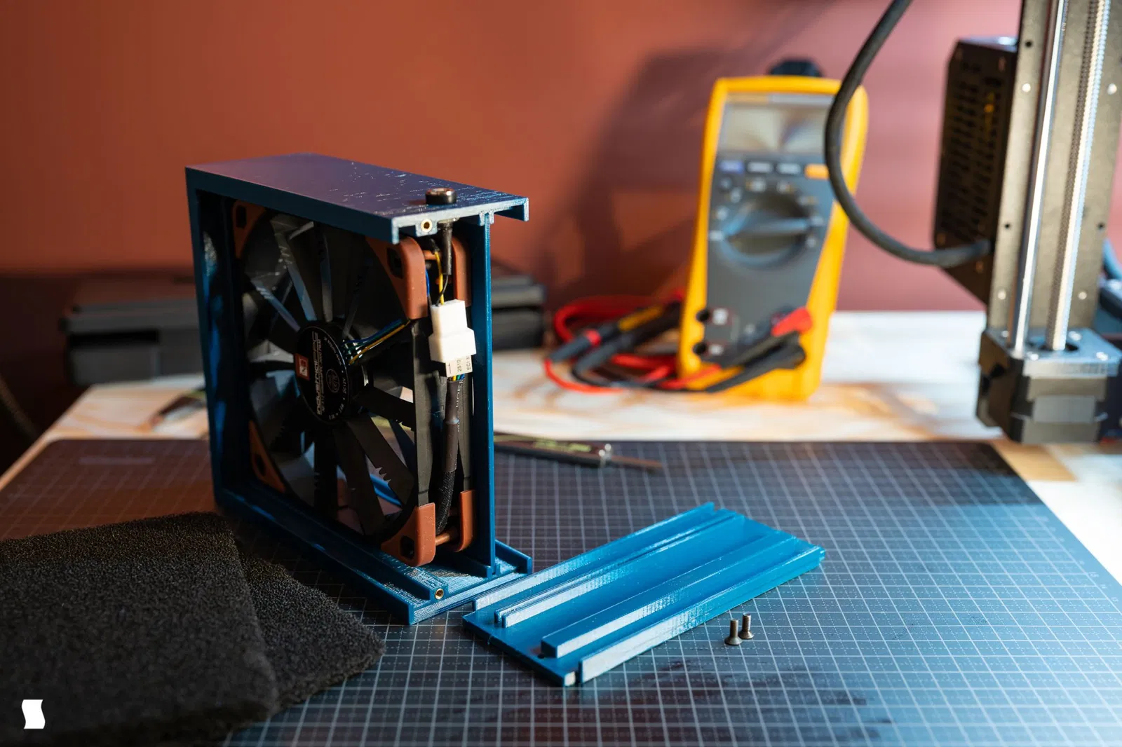 Máy hút khói hàn tối giản với quạt 120mm và hai bộ lọc than hoạt tính. Dễ dàng in thành ba phần riêng biệt và lắp ghép lại thành một gói gọn gàng và chắc chắn. Phần dưới được cố định bằng hai vít M3 chìm và các chốt ren để tăng độ bền và dễ dàng thay thế bộ lọc.