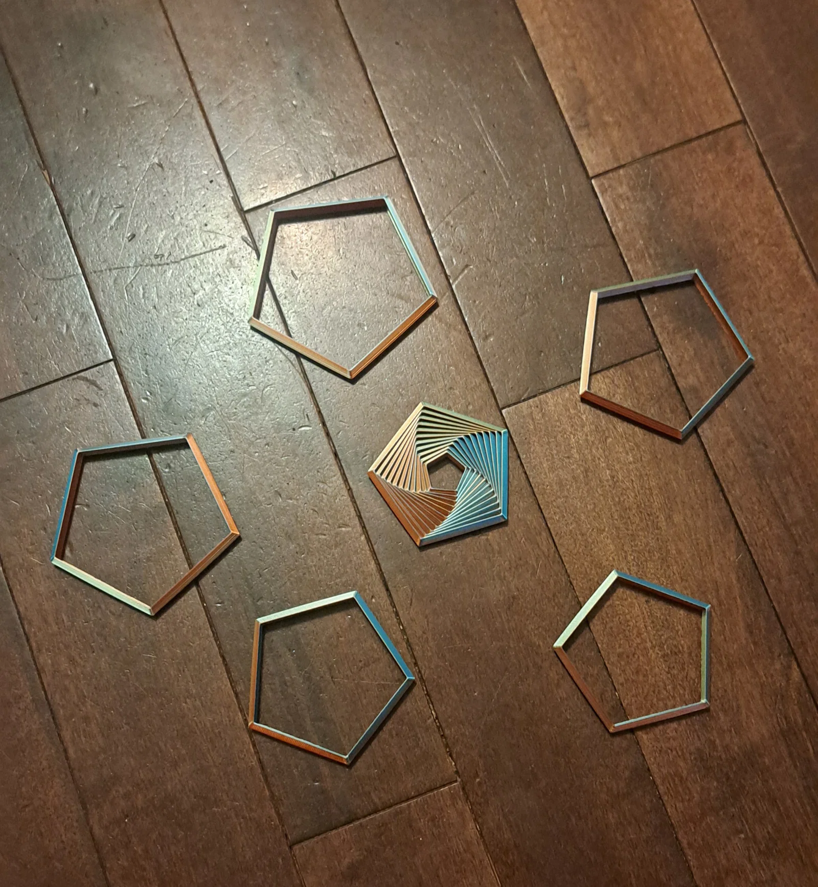 Đây là một món fidget print-in-place vui vui mình làm, có thể tháo rời dễ dàng và xếp chồng lại (hình 2). Fidget này xoay, vặn, lắc hay cầm trên tay đều đã. Bạn có thể để trên bàn làm việc như một cách giải lao nhẹ giữa bất kỳ hoạt động nào. Để ngũ giác này thôi miên bạn khi bạn “trốn” khỏi thực tại một chút với món fidget này!