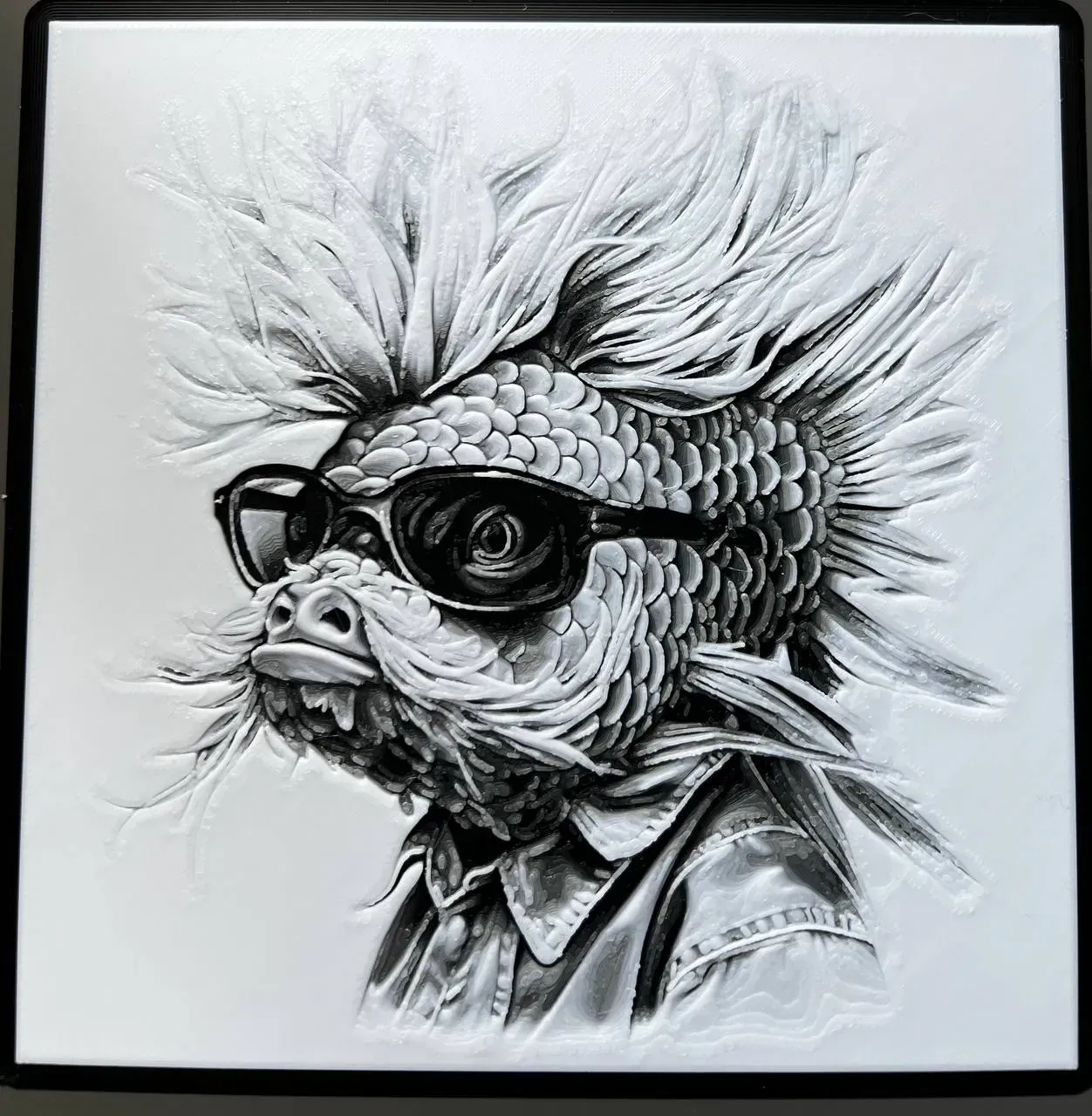 Spike, nhận thấy hành vi khác thường của Finley, đã nảy ra một ý tưởng. Anh nhanh chóng ghi lại nhịp điệu mà Finley tạo ra và phát lại trên cây guitar điện của mình. Đó là một âm thanh độc đáo, sự kết hợp giữa punk rock và nhịp điệu tự nhiên của một con cá vàng. Ban nhạc đã rất ngạc nhiên trước giai điệu độc đáo và quyết định sử dụng nó trong buổi biểu diễn của họ. Đêm đó, ban nhạc đã chơi nhạc punk rock lấy cảm hứng từ cá vàng. Đám đông đã phát cuồng, yêu thích âm thanh độc đáo. Ban nhạc đã trở thành một hiện tượng, tất cả nhờ vào Finley, con cá vàng punk. Từ đó trở đi, Finley không chỉ là một con thú cưng; anh là một phần của ban nhạc. Những nhịp điệu độc đáo của anh trở thành âm thanh đặc trưng của ban nhạc, khiến họ trở thành một hiện tượng trong giới punk rock. Và thế là, con cá vàng punk đã sống ước mơ phiêu lưu và hồi hộp của mình, chứng minh rằng ngay cả một con cá vàng cũng có thể làm rung chuyển thế giới punk. Thích công việc của tôi? Hãy ủng hộ tôi bằng cách tham gia câu lạc bộ của tôi. Cấp độ 1 cung cấp các mô hình độc quyền, trong khi Cấp độ 2 cho phép bạn bán các tác phẩm nghệ thuật in 3D của tôi.