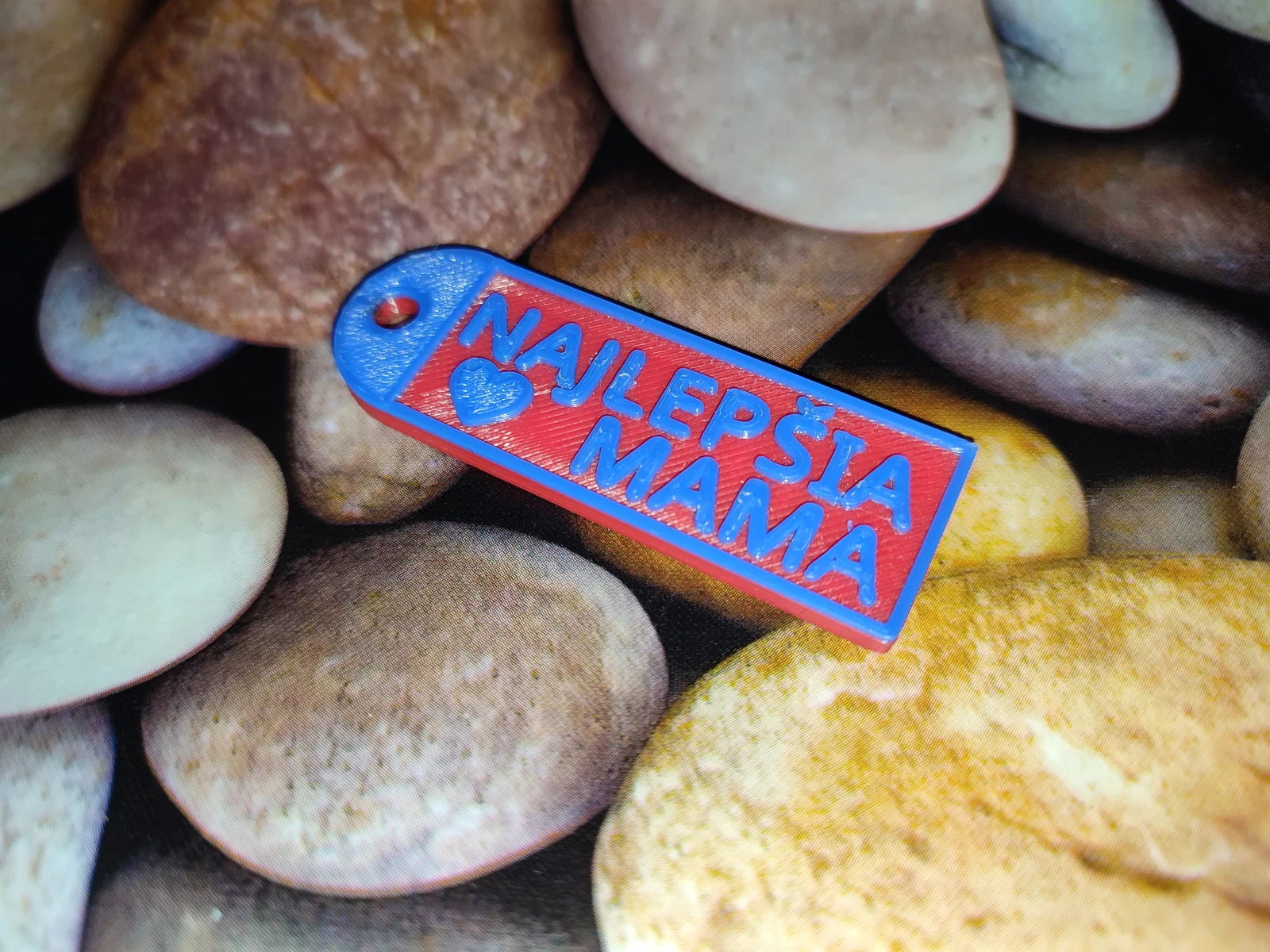 Mẫu móc khóa đơn giản làm quà tặng cho Ngày của Mẹ và Ngày của Cha. Có thể in bằng mọi loại filament, nhưng được thiết kế tối ưu để in 2 màu với thao tác color change để làm nổi chữ.