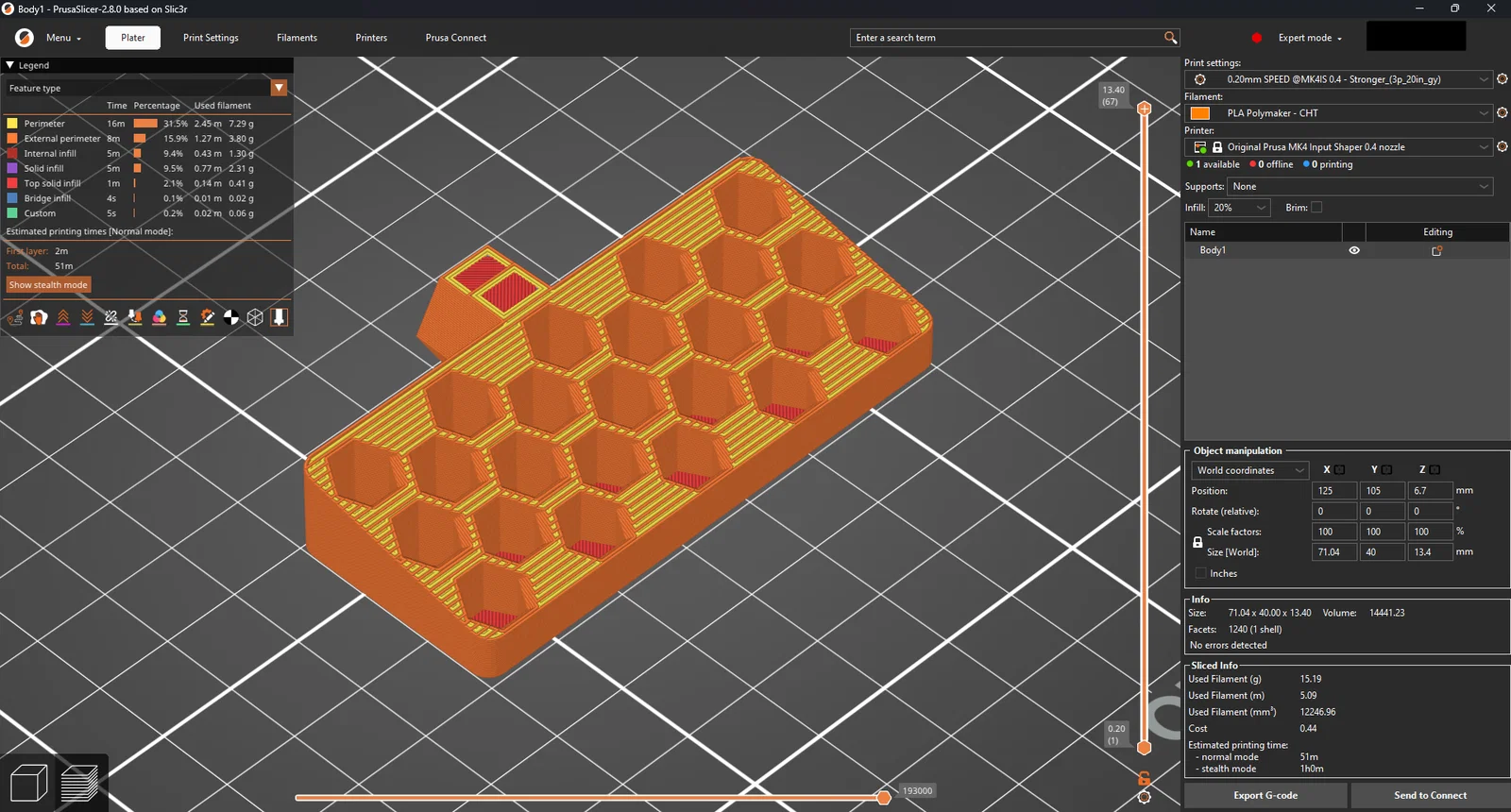 Đặt hướng in giống như trong hình, slice sao cũng được (mình in PLA, 3 perimeters và layer 0.2mm thấy ổn)