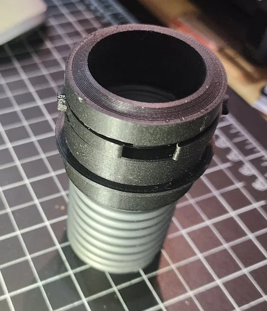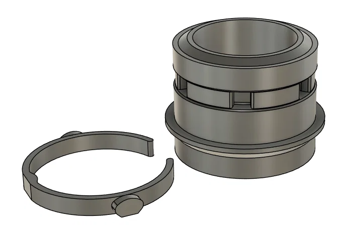 Adapter quick connect cho ống hút bụi Cen-Tec. In ở 0.2mm không cần support; với bản có support thì bẻ khỏi rãnh rồi bấm clip vào. Đợi nguội về nhiệt độ phòng trước khi gắn snap ring để khỏi bị biến dạng.