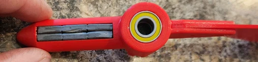 - Nhét các cục chì vào mặt dưới của phần pointer trên hub.
