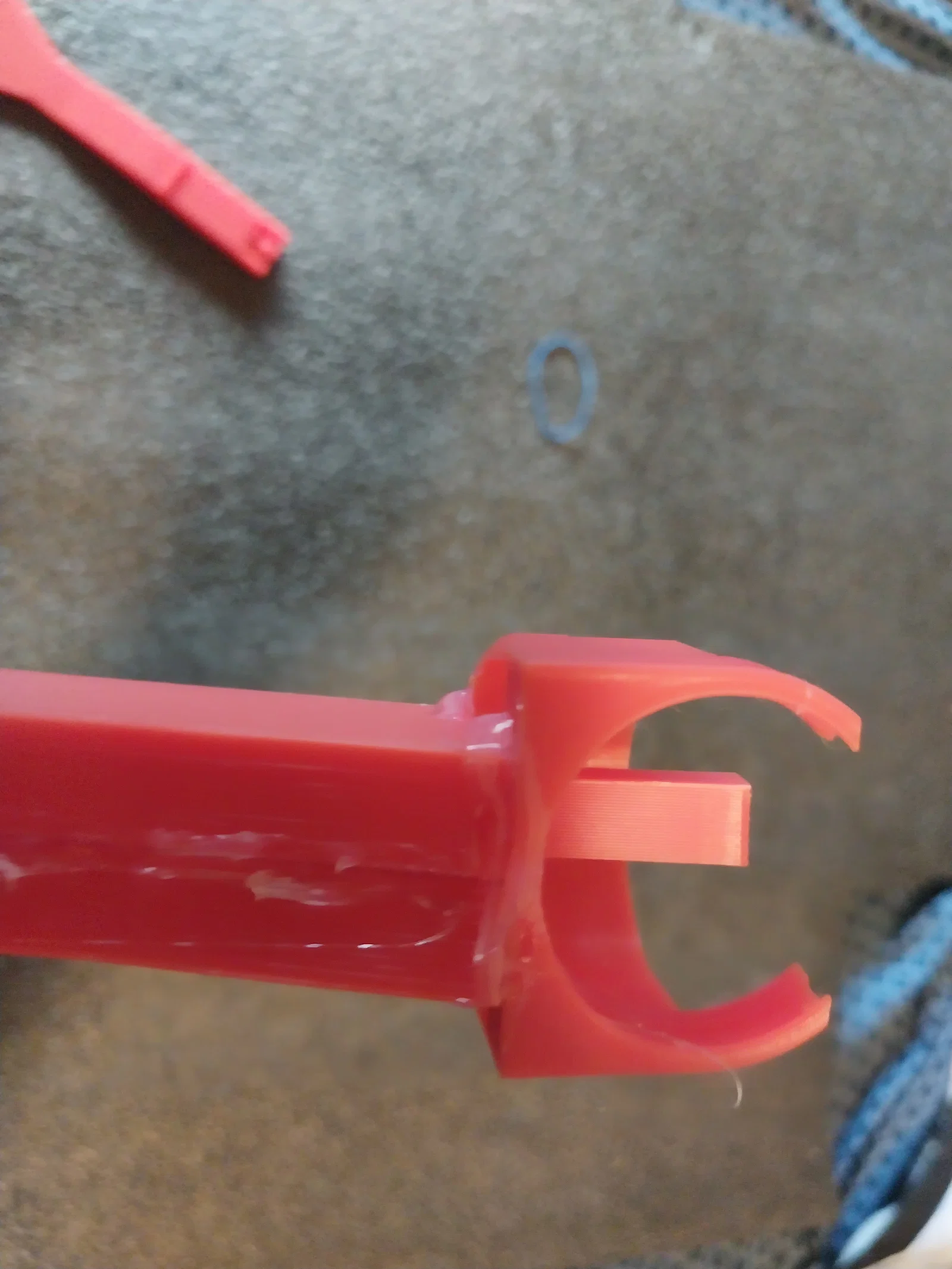 Khi canh nozzle, nhìn phần ở mặt dưới của chi tiết—đoạn mà máy làm phẳng và bắt đầu bo cong (ark). Nhìn hình sẽ dễ hiểu hơn: canh đường ráp (seam) của thân súng đúng vào giữa phần đó rồi dán keo lại.