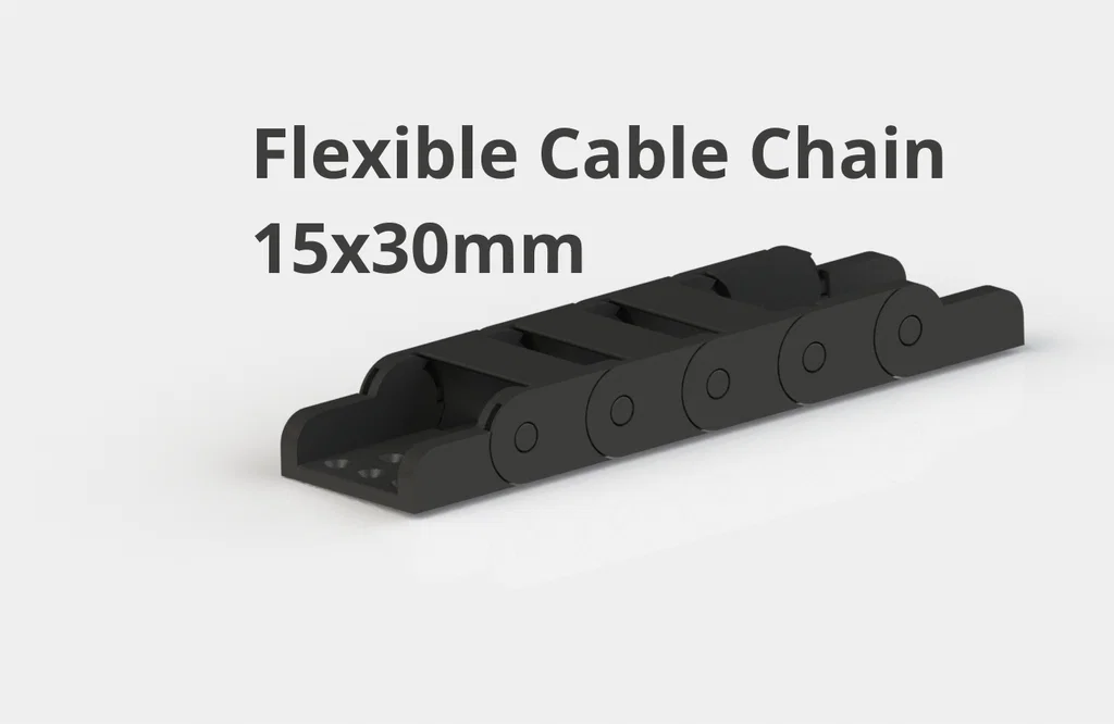 Cable Chain 15x30mm Flexible Drag dạng drag chain linh hoạt, gồm end links, closed links và open link; không có cover tháo rời. Nên in kèm supports, cần máy in calibrated để đảm bảo tương thích với sản phẩm gốc.