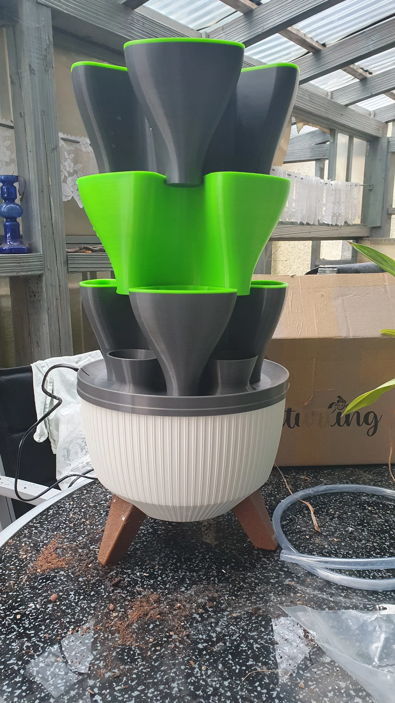 Mẫu Hydroponic Style Tower Indoor là hệ tháp thủy canh để bàn cho nhà bếp, giúp trồng rau thơm trong nhà gọn gàng. Có các module xếp tầng, nắp trên/dưới, giỏ trồng, kèm hướng dẫn bơm, ống và thông số in PETG.