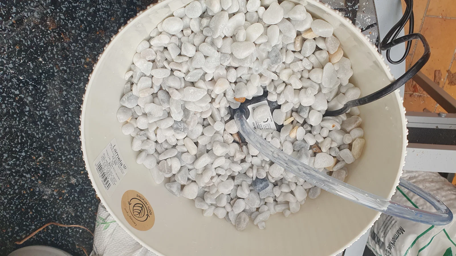 - ở đây chỉ cần bơm mini 230V kiểu bơm hồ/giếng, 5W và cột áp 60cm là đủ