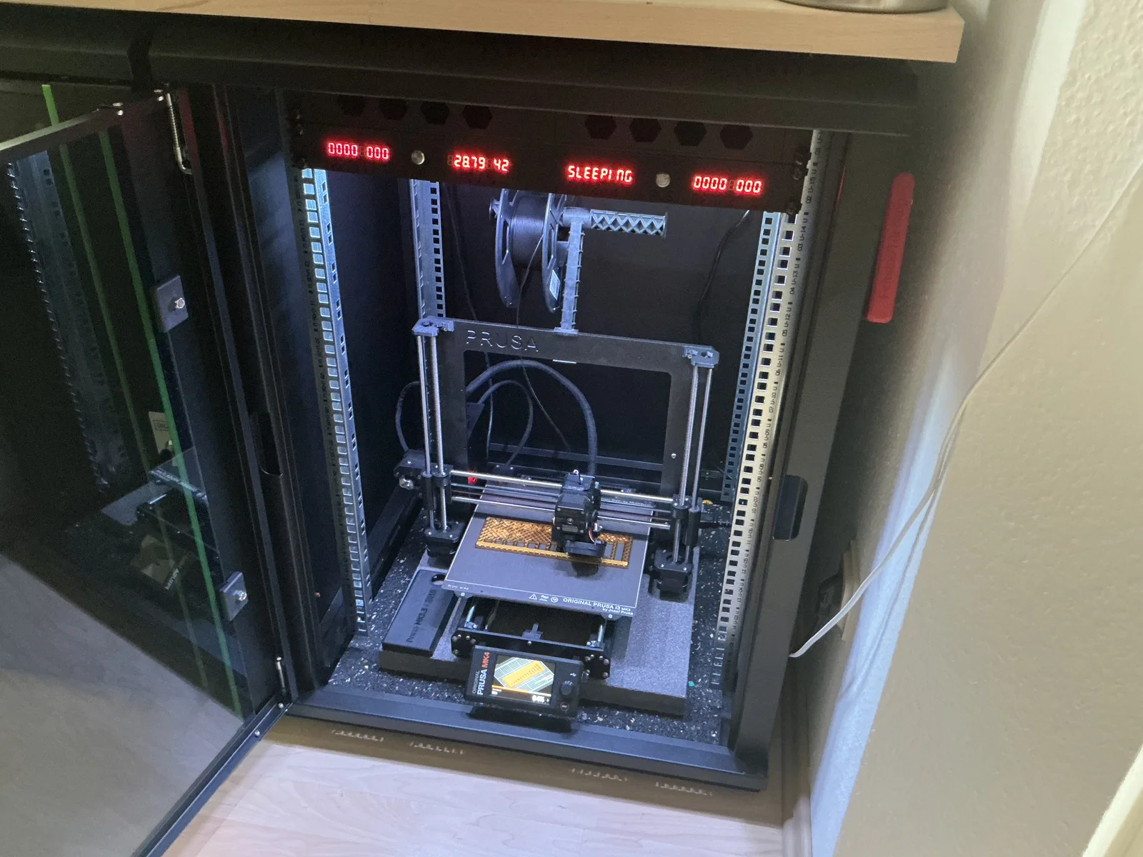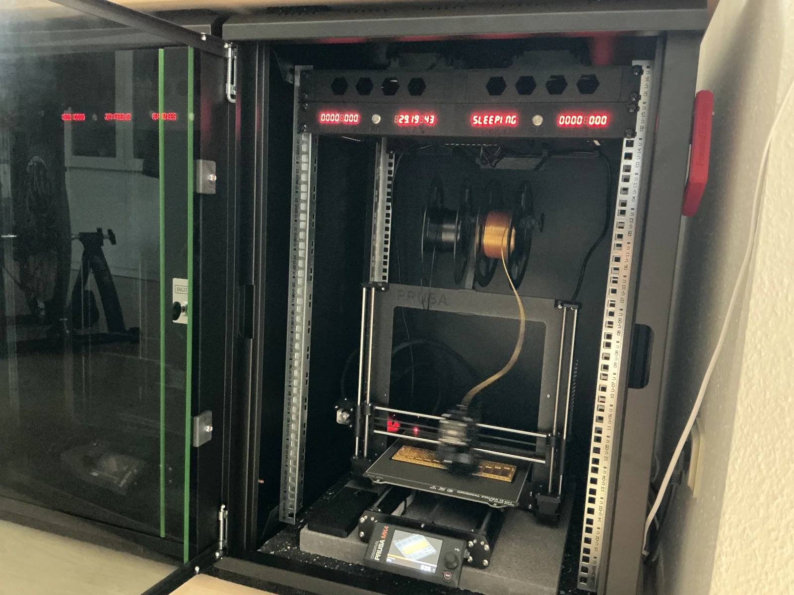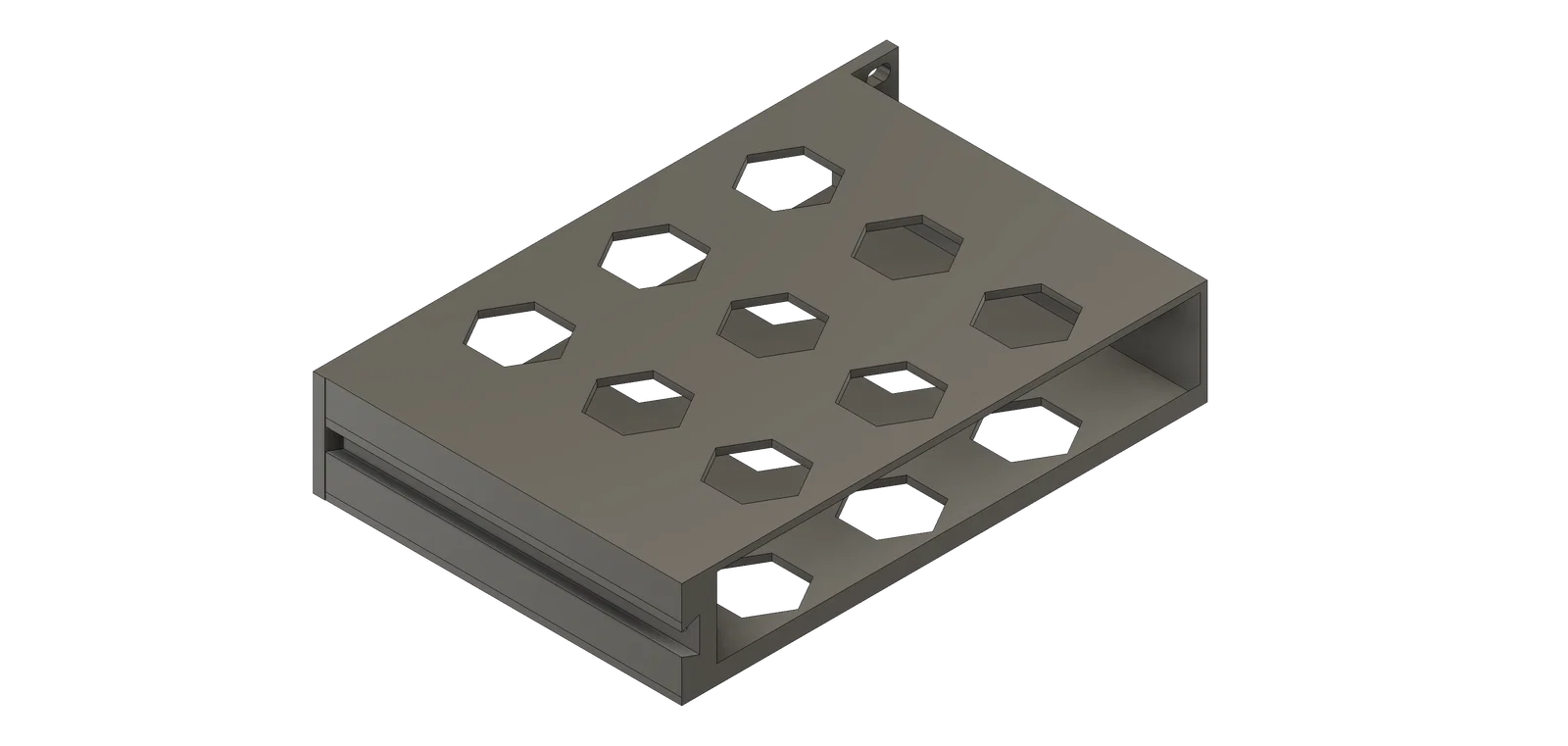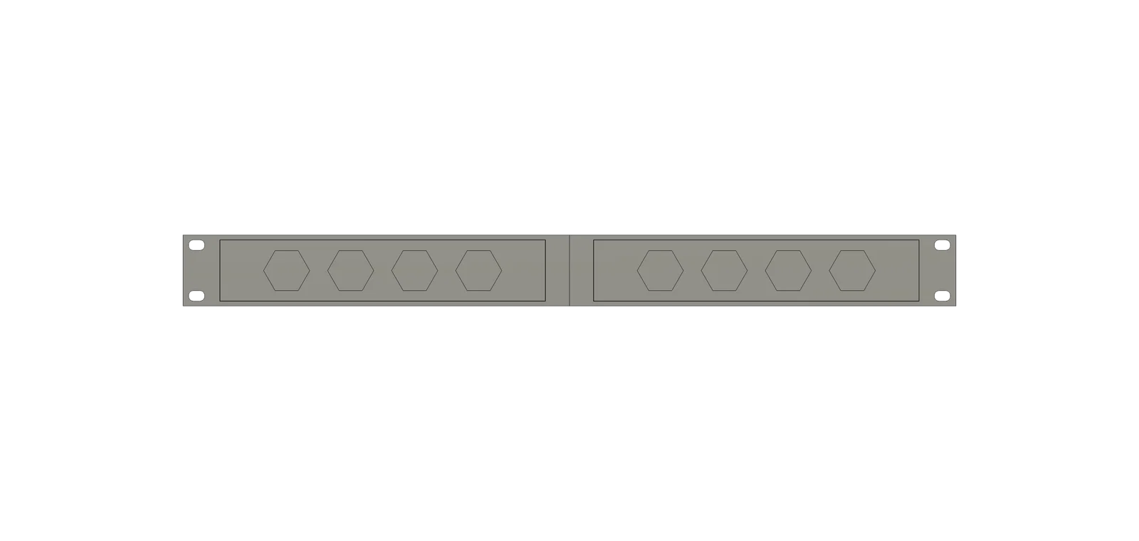 Mẫu giá đỡ rack 19" dạng rackmount cao 1U, đi kèm 2 ngăn kéo tiện dụng. Cần 2 vít M4x25 + đai ốc M4 và 4 vít lắp rack. Khuyến nghị in PLA, mặt trước dựng đứng, ngăn kéo in đáy.
