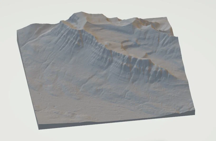 Mô hình địa hình (topographic) của Castle Mountain ở Alberta, Canada, thuộc Vườn quốc gia Banff (Canadian Rockies). Kích thước 200mm x 200mm, không phóng đại độ cao theo trục dọc.