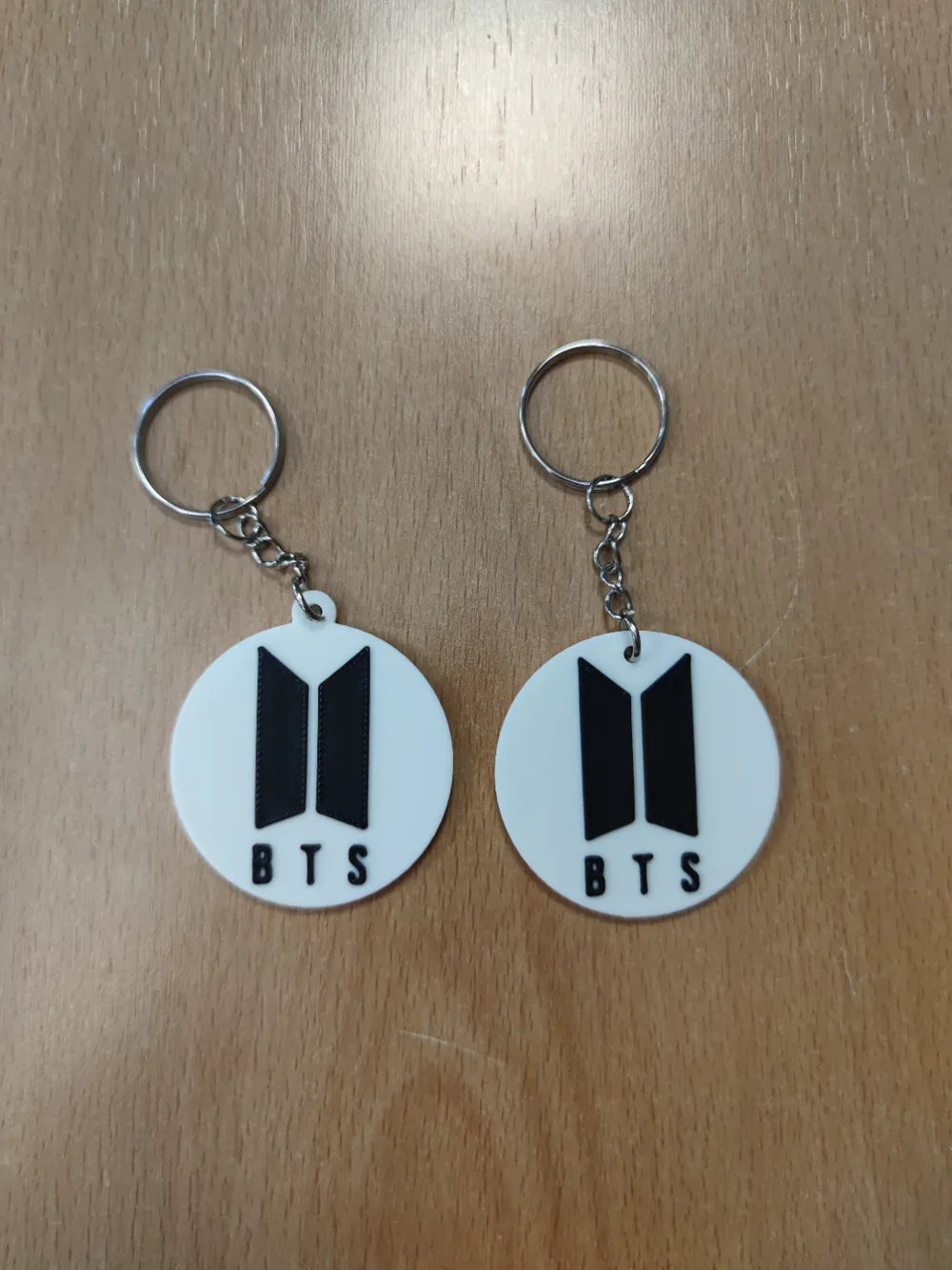 Có 2 phiên bản: một bản kèm khoen móc khóa và một bản chỉ có lỗ. Quá hợp cho mọi ARMY!