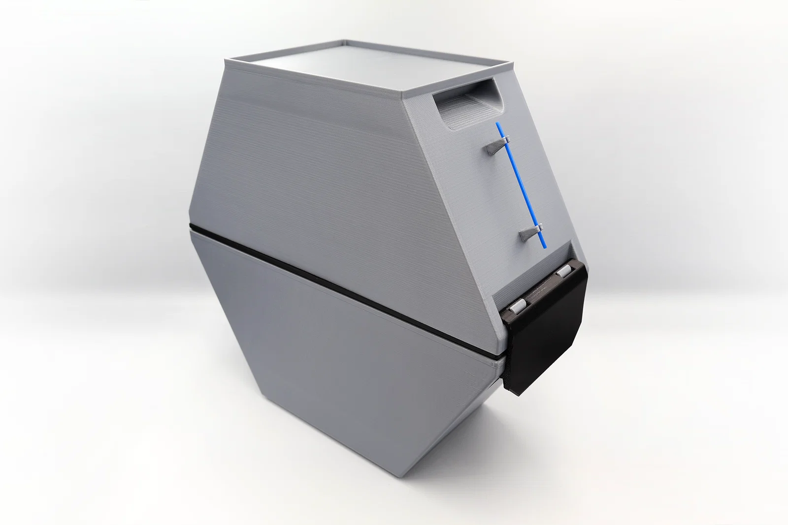 Hộp Dry Box in hoàn toàn để cất spool filament, xếp chồng linh hoạt, có kiểm soát độ khô bằng desiccant và gasket TPU tùy chọn. Chứa spool tới 210 mm đường kính, 80 mm bề rộng; không cần support khi in.