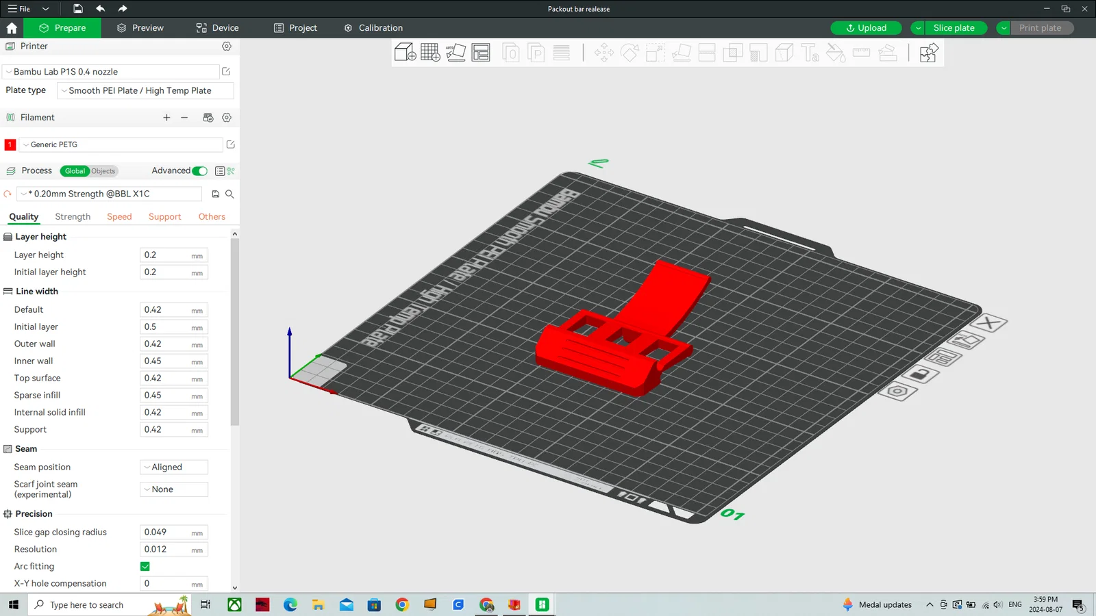 Release clip (Bar latch) cho Milwaukee Packout có ngăn kéo. Mình in bằng PETG và in trên cạnh để tăng độ bền, dùng đúng chức năng như thiết kế. Có đăng thêm file này lên MakerWorld để bạn tiện tải.