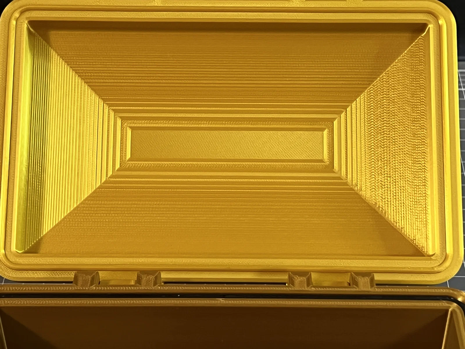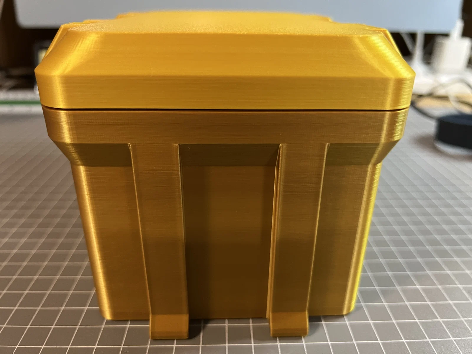 Hộp và nắp: tối thiểu 3 perimeters, 20% grid infill. PETG, PLA, ASA, ABS, v.v.