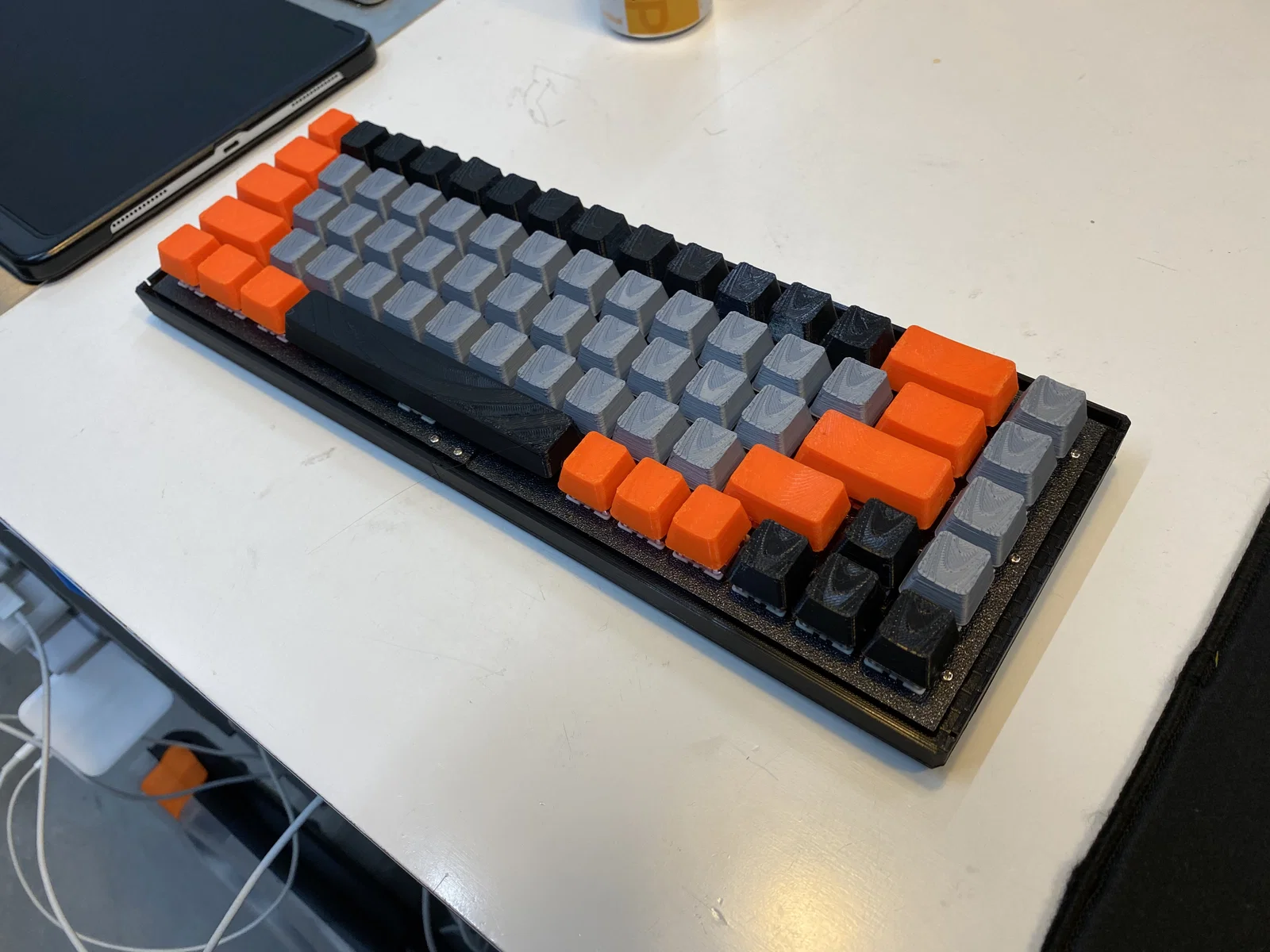 Mình rất thích màu cam đặc trưng của Prusa, cùng với đen và xám. Lấy cảm hứng từ những màu này, mình đã thiết kế một bàn phím cơ phong cách Prusa.