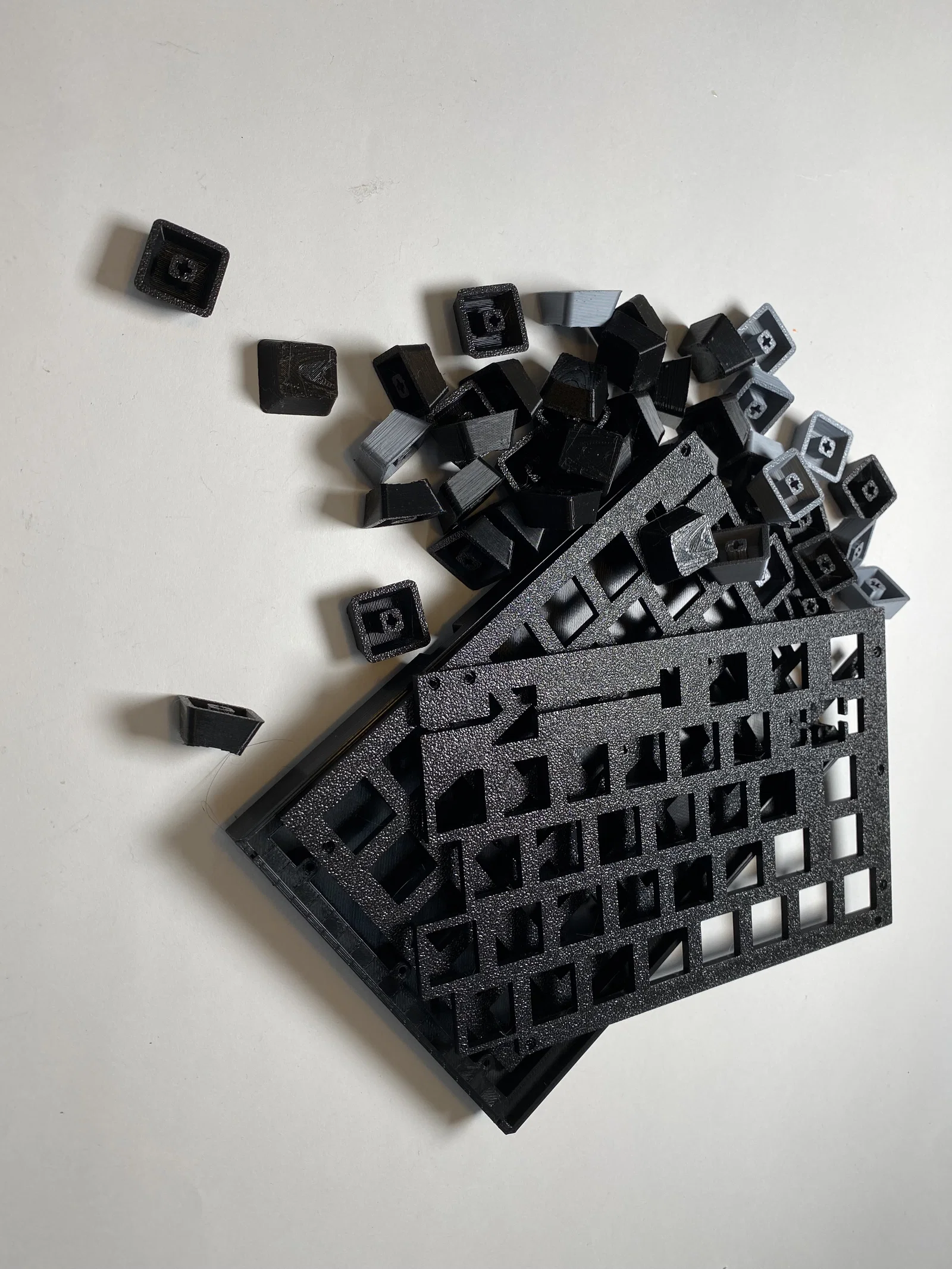 Mẫu bàn phím cơ 68 phím phong cách Prusa, có thể làm gần như chỉ với máy in 3D. Tác giả có chia sẻ sẵn code Arduino và danh sách linh kiện cần chuẩn bị (switch, diode 1N4148, cherry stabilizer).