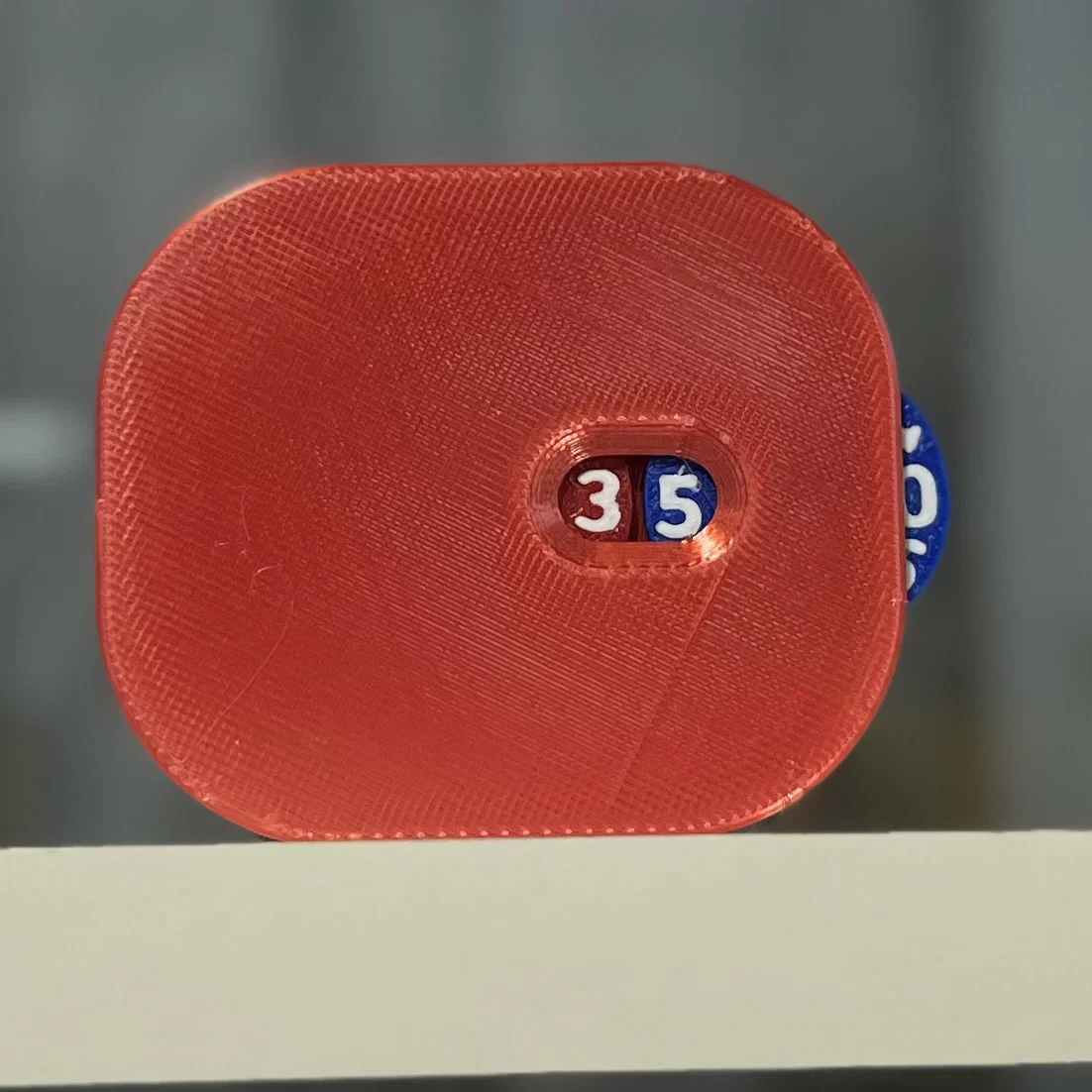 Mẫu Two Digit Counter là bộ đếm 2 chữ số, dải đếm 00–99. Dùng cơ cấu Geneva (geneva mechanism) để tự tăng chữ số thứ hai khi chữ số đầu quay từ 9 về 0, vận hành mượt và dễ in.