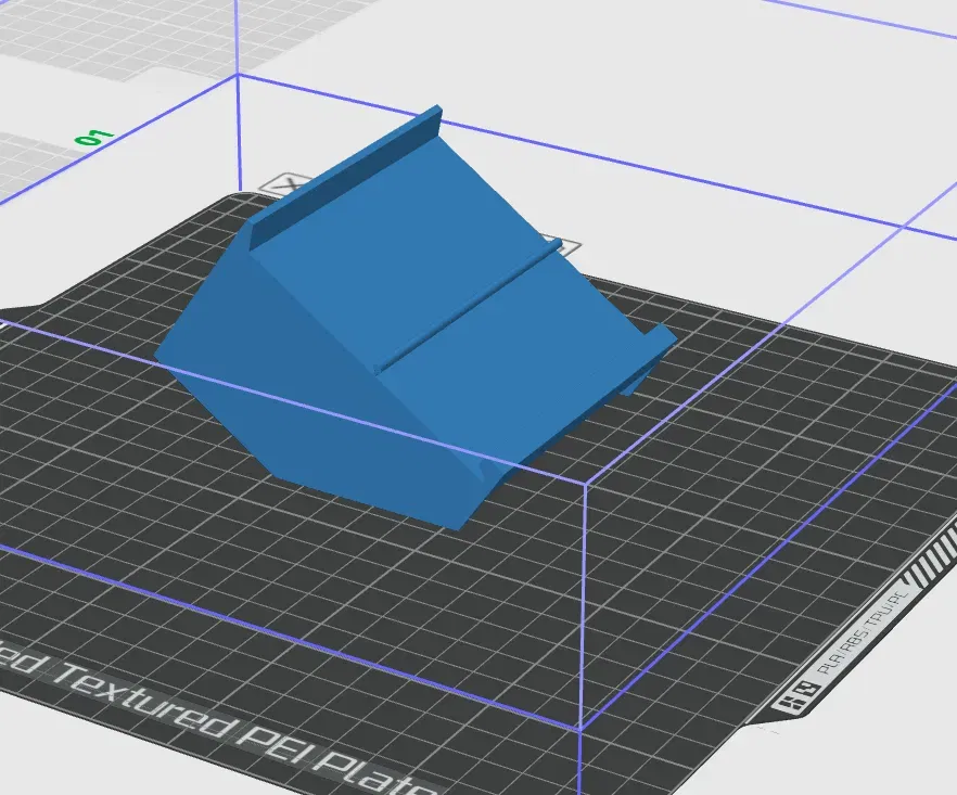 In ngược lại như trong hình để có thể in mà không cần hỗ trợ. Chức năng tự xoay của máy cắt của bạn nên đặt nó theo cách đó. Khi xoay theo cách đó, bạn có thể cắt phần trên của vật thể nếu bạn muốn có không gian cho dây đi từ dưới/lưng.