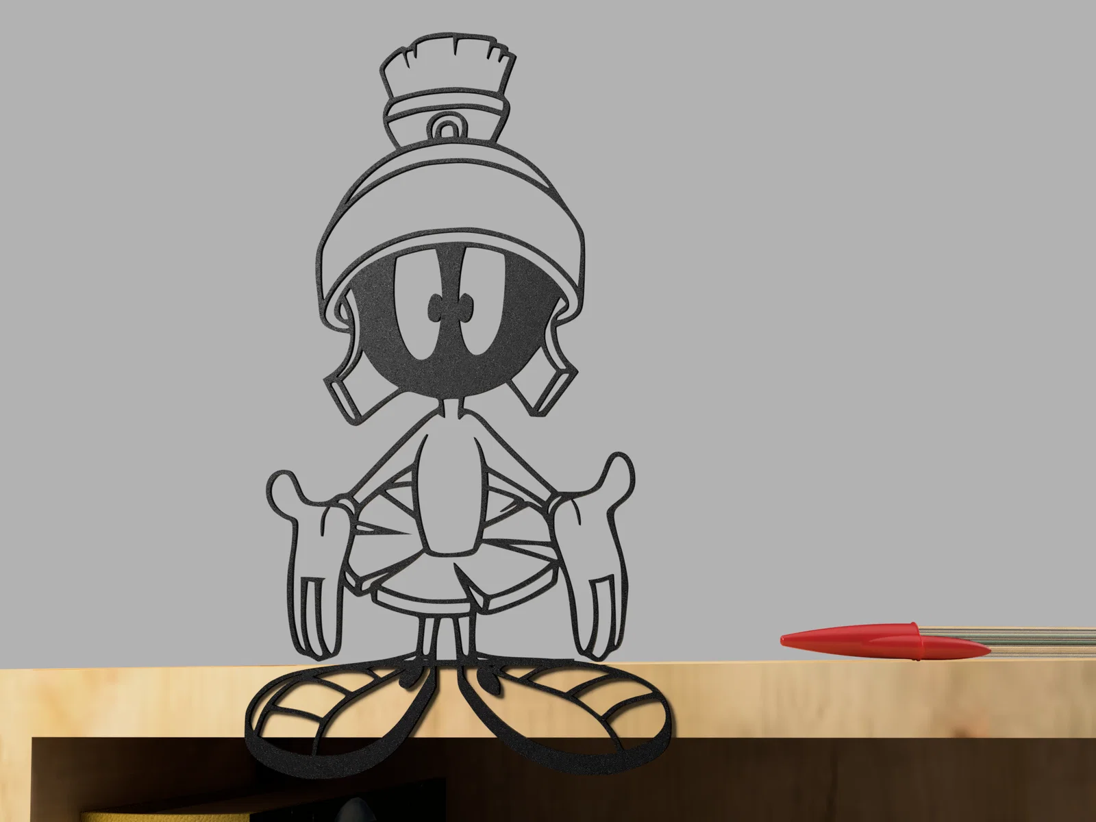 Model Marvin the Martian có bản một màu hoặc đa màu. File đã được tách viền (kèm đế) và các phần màu riêng để ghép thành bản render nhiều màu. Có tab dưới để dùng Sticky Tack hoặc có thể xoá khi slicing để treo tường.