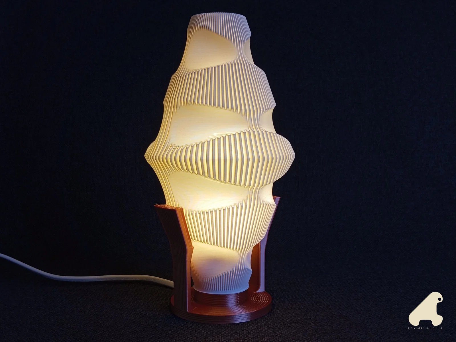 - Bám dính: brim 3 mm. Chụp đèn có thể bị đổ nếu máy in của bạn có cọ/va nhẹ vào phần đang in.