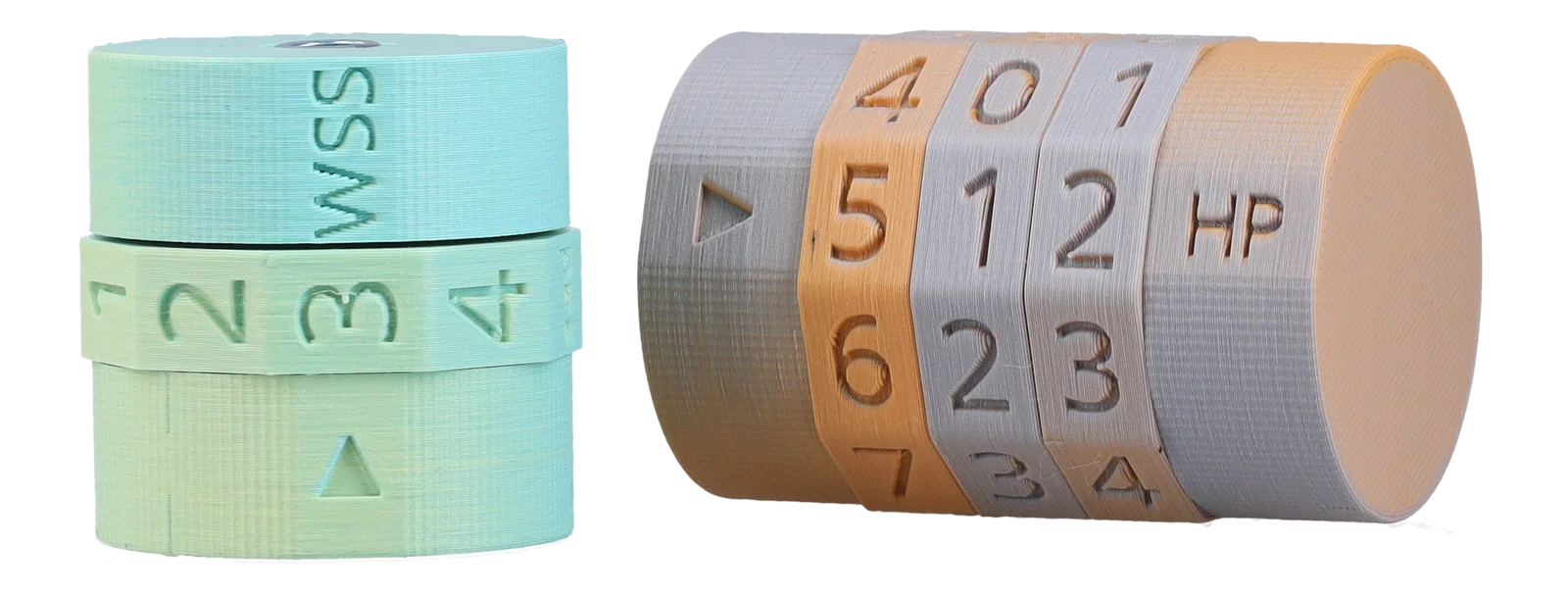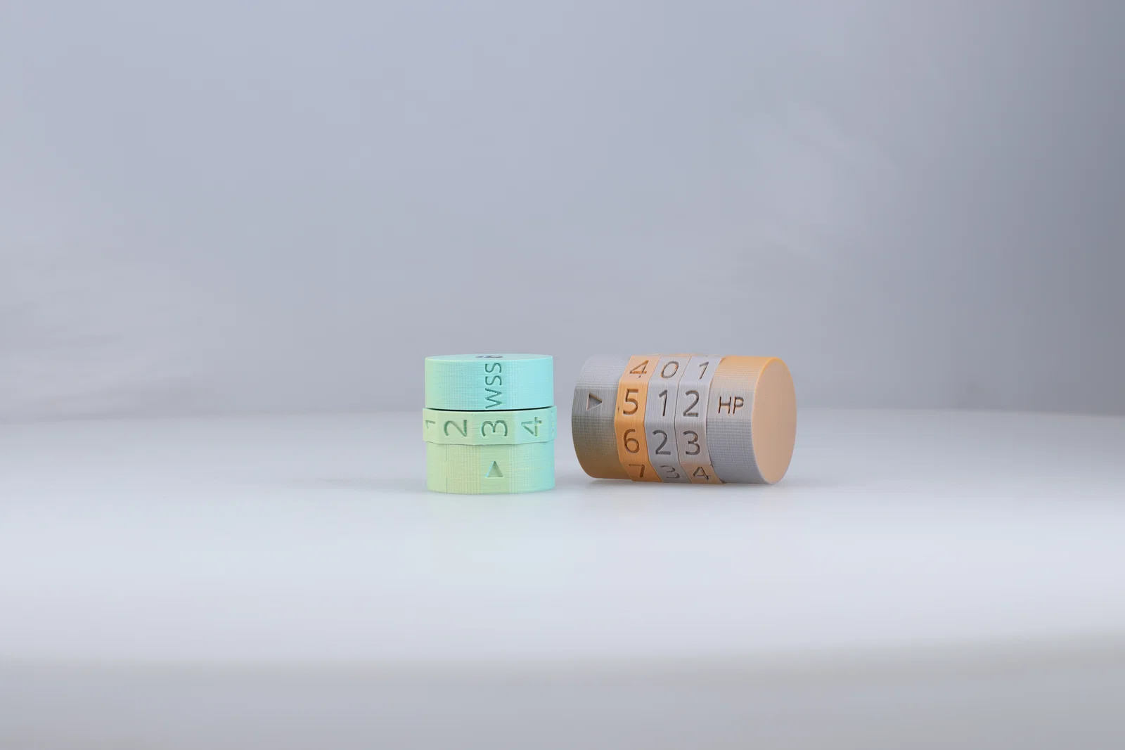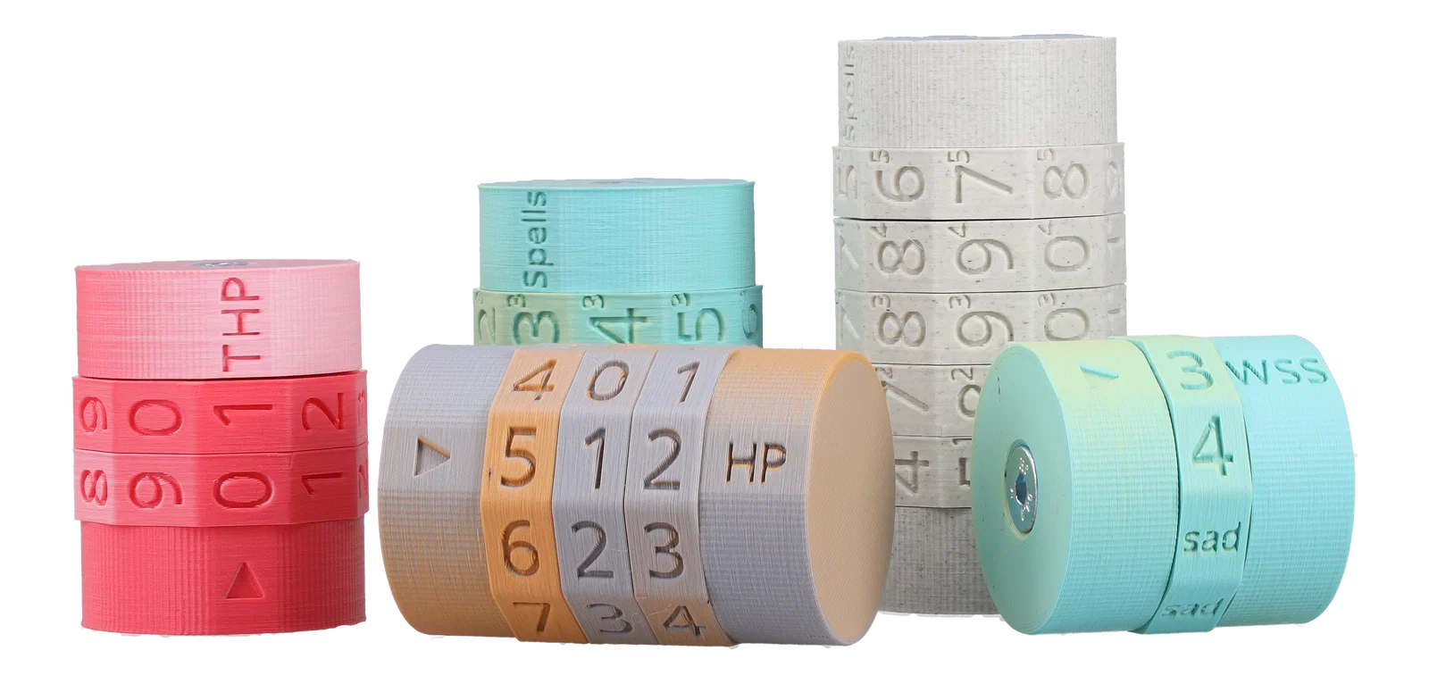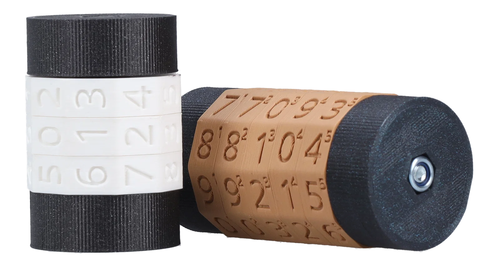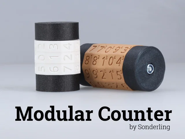 Bộ đếm modular tùy biến để theo dõi tài nguyên trong tabletop RPGs. Bánh số xoay tay và khóa theo nấc. Có bản không vít hoặc bản dùng vít M6 + ê-cu nyloc bền hơn; chọn số bánh để chọn hub, end cap và chiều dài vít.