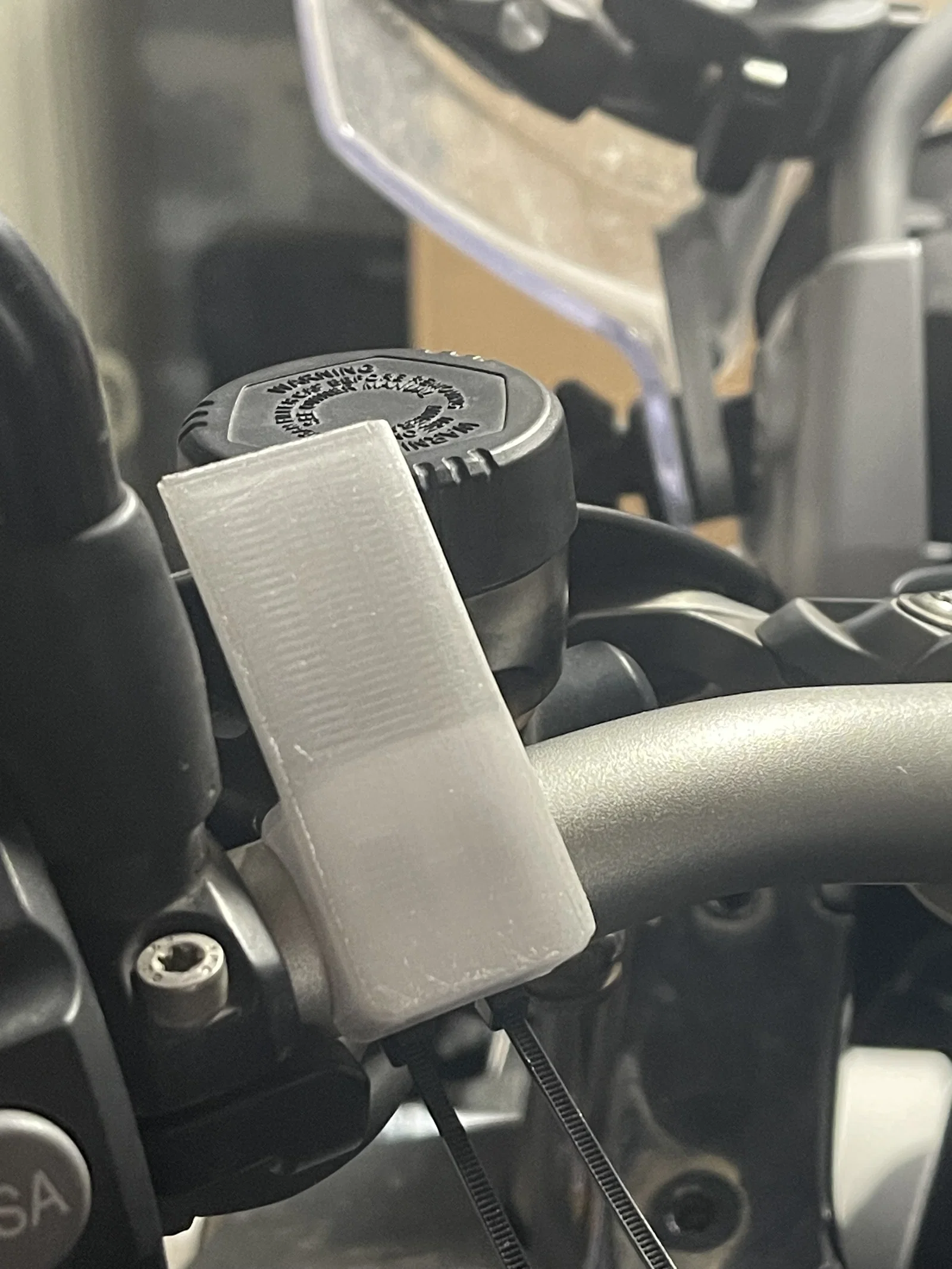 Mình không thích cách DJI làm là gắn remote control lên ghi-đông xe bằng dây đeo. Nó vừa lỉnh kỉnh, lúc thao tác lại hay bị xoắn. Vì vậy mình thiết kế cái holder rất đơn giản này, có thể gắn lên bất kỳ ghi-đông 22 mm nào bằng 2 dây rút. Trên BMW R 1200 GS, holder được tựa vào bình dầu côn. Nhờ vậy thao tác rất ổn, không bị lệch hay xoay vị trí. Đơn giản hết mức luôn! Gắn holder bằng 2 dây rút ở bên trái ghi-đông. Gắn remote control vào là xong. Khi không dùng, bạn có thể tháo remote control lên phía trên rất dễ. In bằng PETG Layer 0,20 Infill 100% Supports on bed only Brim 5 đến 10 mm