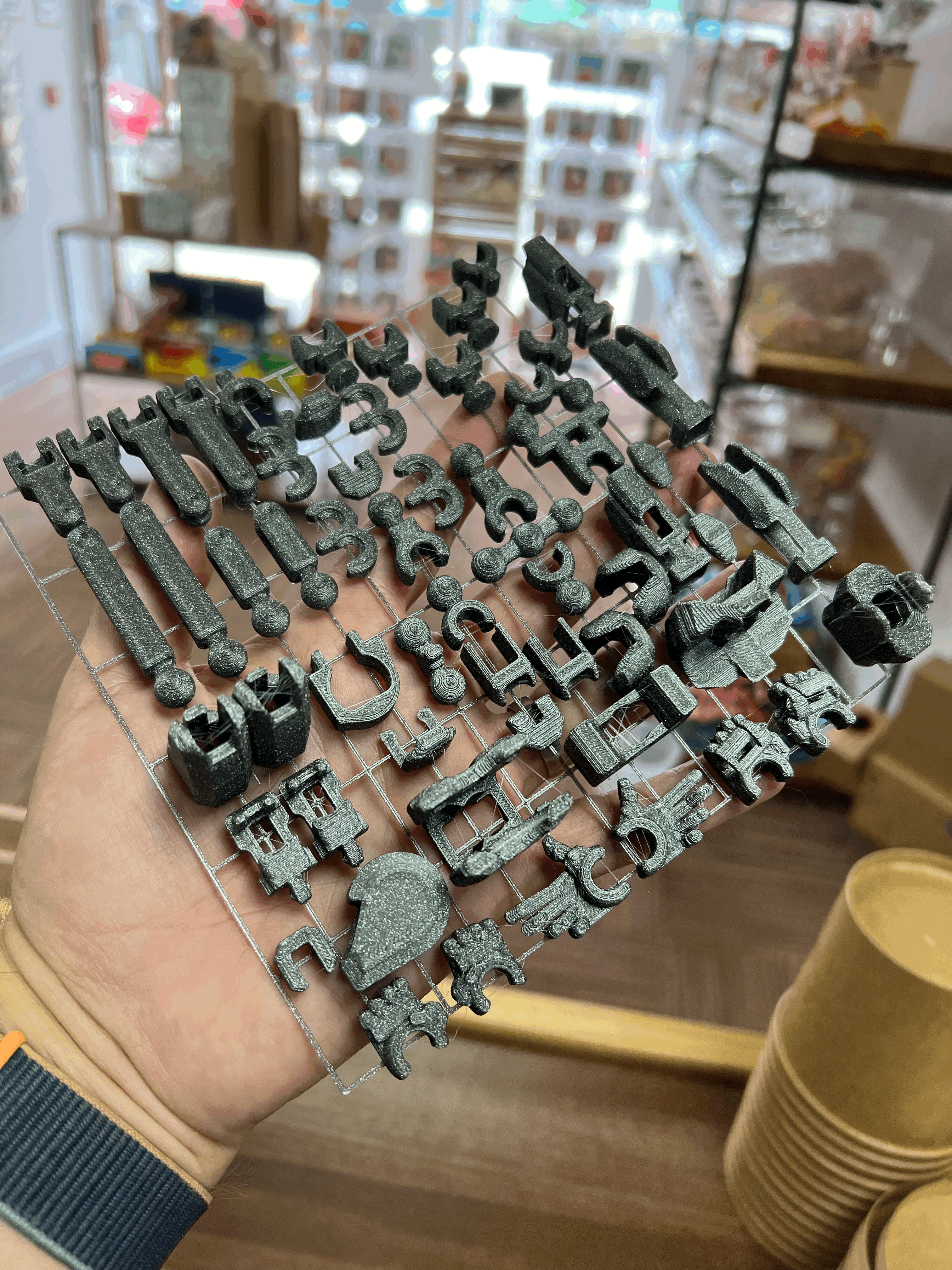 Các phần (parts) được nối bằng lưới (grid) 1mm, cao 1 hoặc 2 lớp layer để giữ cố định trong lúc in.