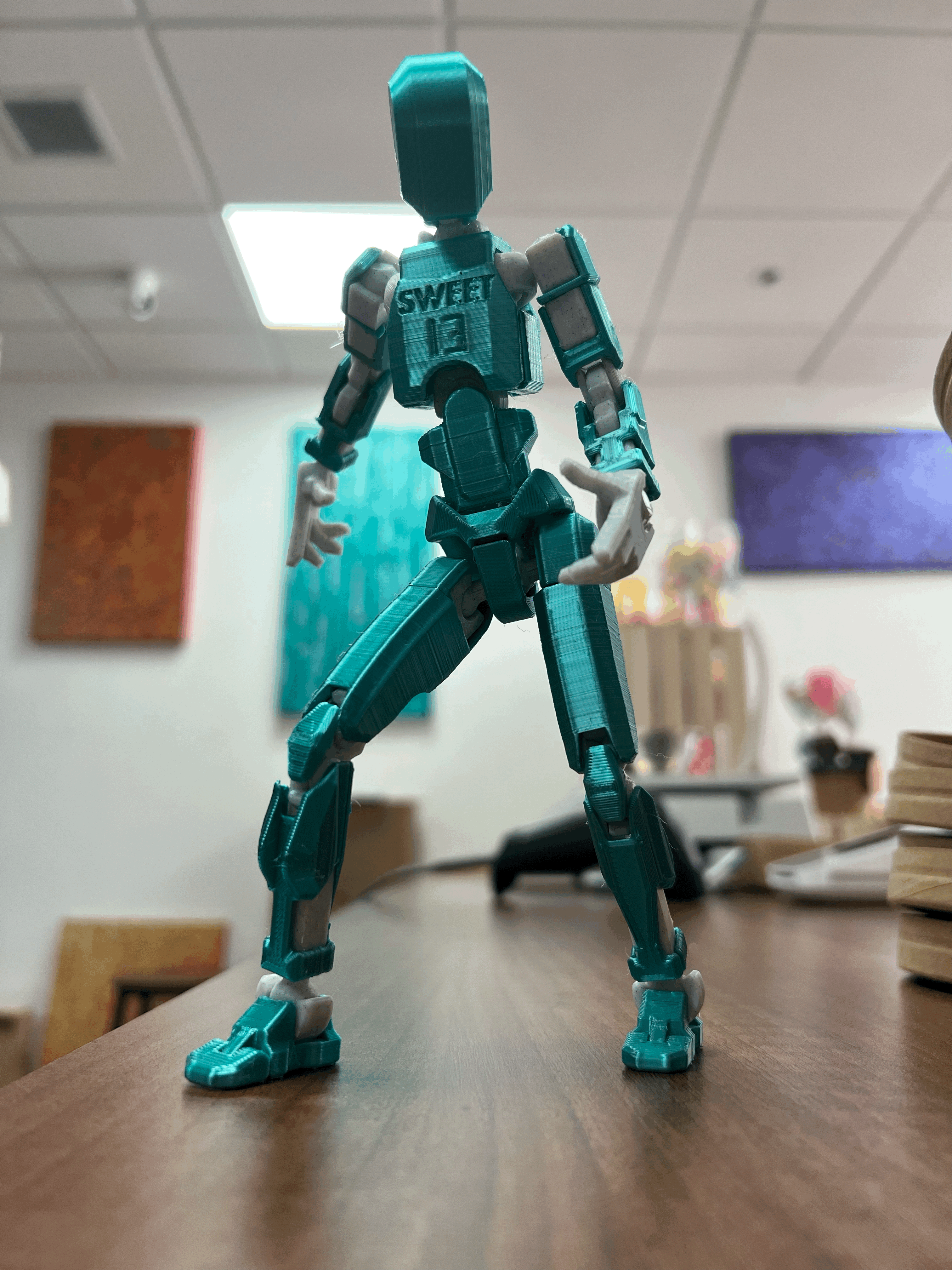 Mô hình DUMMY 13 dạng figure khớp nối (BETA), được scale lên 150% và có lưới grid 1mm giữ các parts khi in. Lưu ý vài miếng armour có thể hơi khít, dễ gãy với PLA yếu; file ALL PARTS đã tăng pelvis armour +3%.