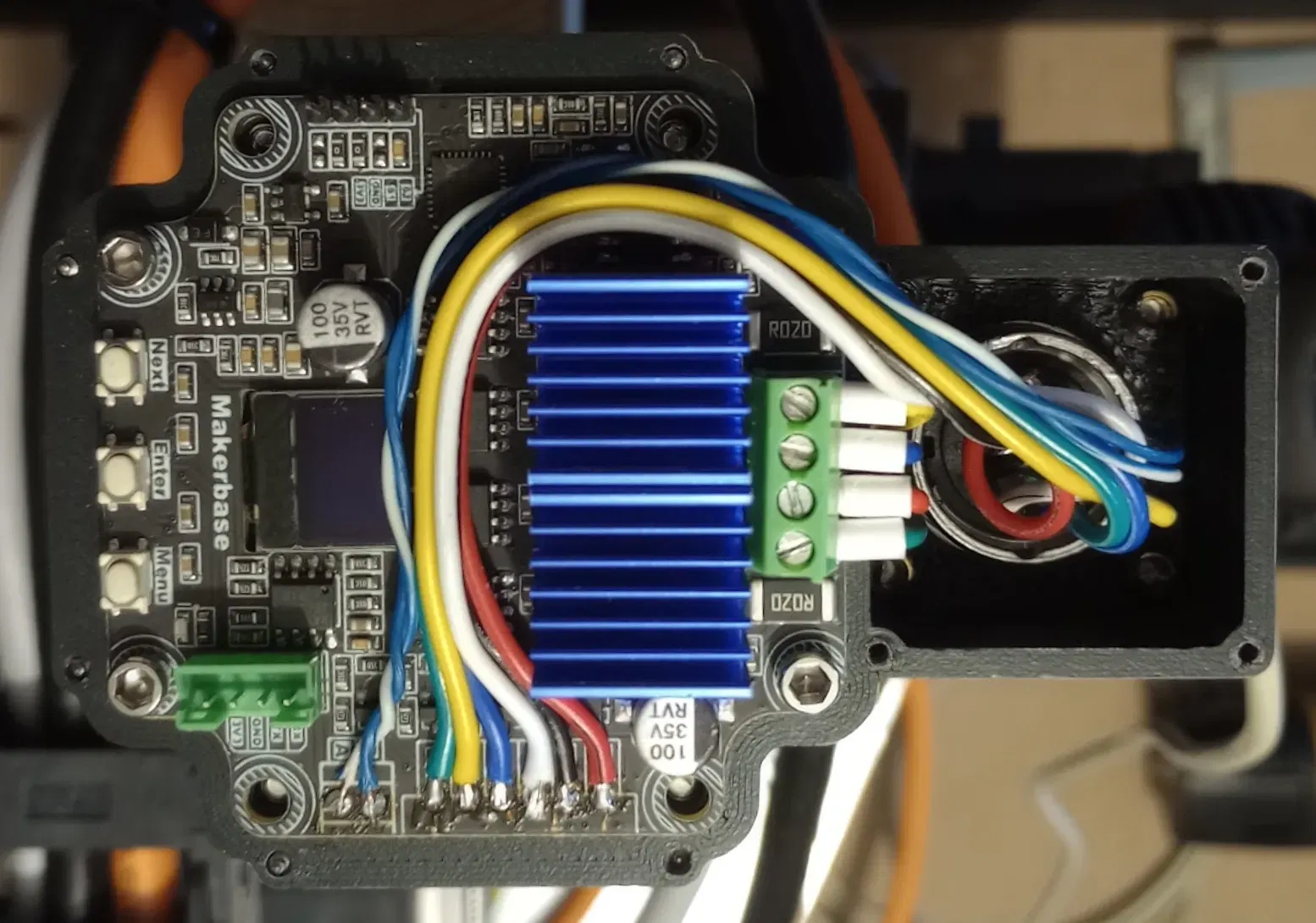 LƯU Ý: - Một số động cơ Nema23 cần khoan và ren, nhưng hầu hết sẽ vừa khít. Điều này có thể dễ dàng thực hiện bằng cách tháo tấm lưng ra. - Đầu nối JST cần được gỡ bỏ khỏi PCB!