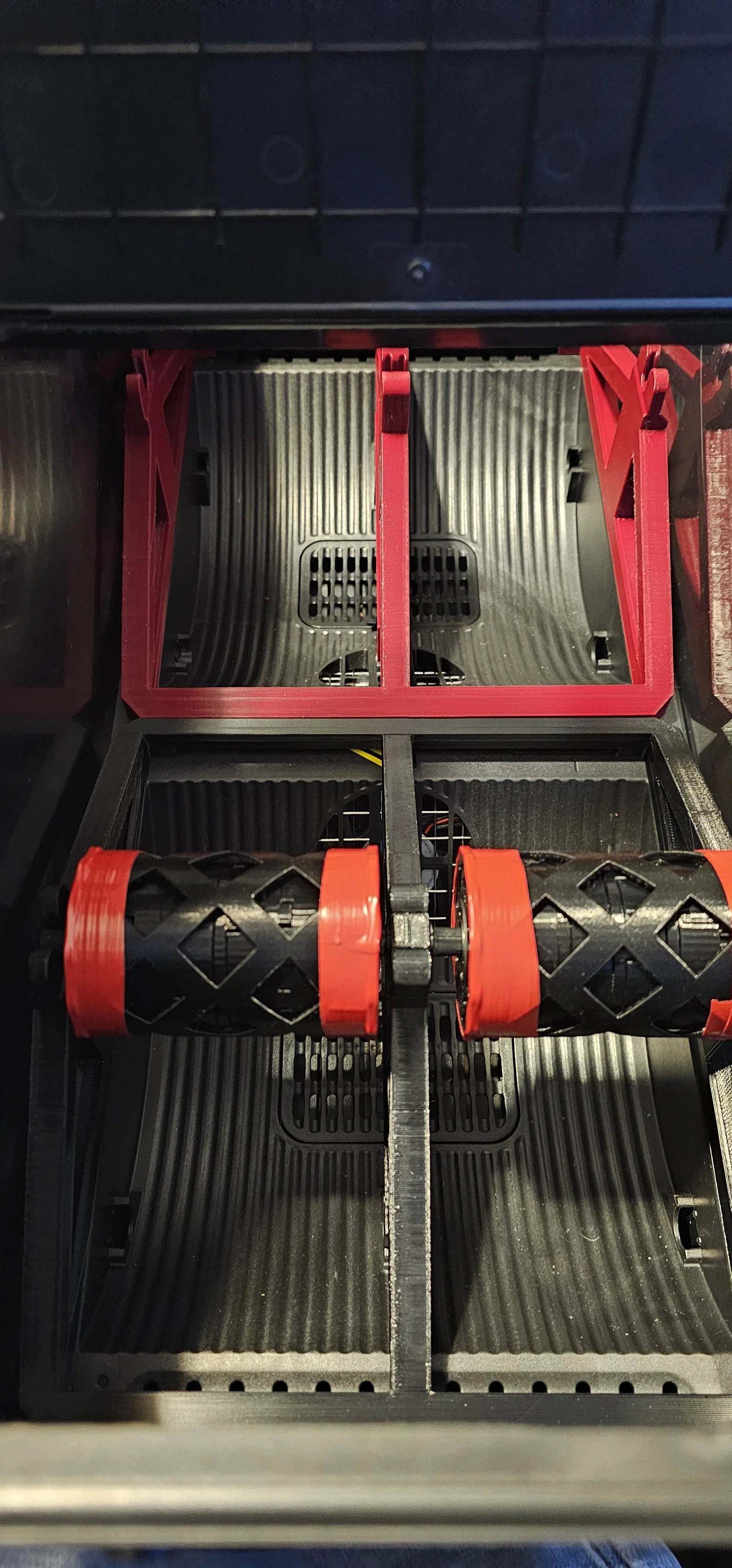 Bộ double stand cho Sunlu S4 Integrated Auto Rewinder: bản gia cường dựa trên stand của Robert Schiele, có bottom clip kẹp chặt vào middle bearing holder, chừa khe thông gió/sensor. In 2 cái, dùng Axle của Robert và rewinder 75mm của Vincent.