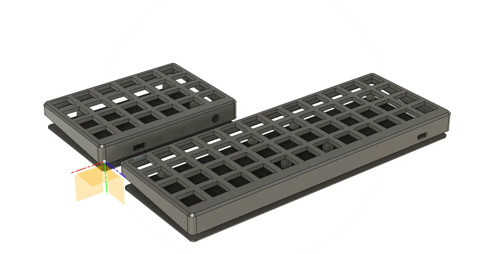 Bộ model bàn phím ortholinear 40% low profile dạng handwired hỗ trợ QMK/ZMK: gồm bản Full 48 phím (hợp cấu hình BT) và bản Split nam châm siêu gọn. Split có thể ghép lại dùng như bàn phím full.