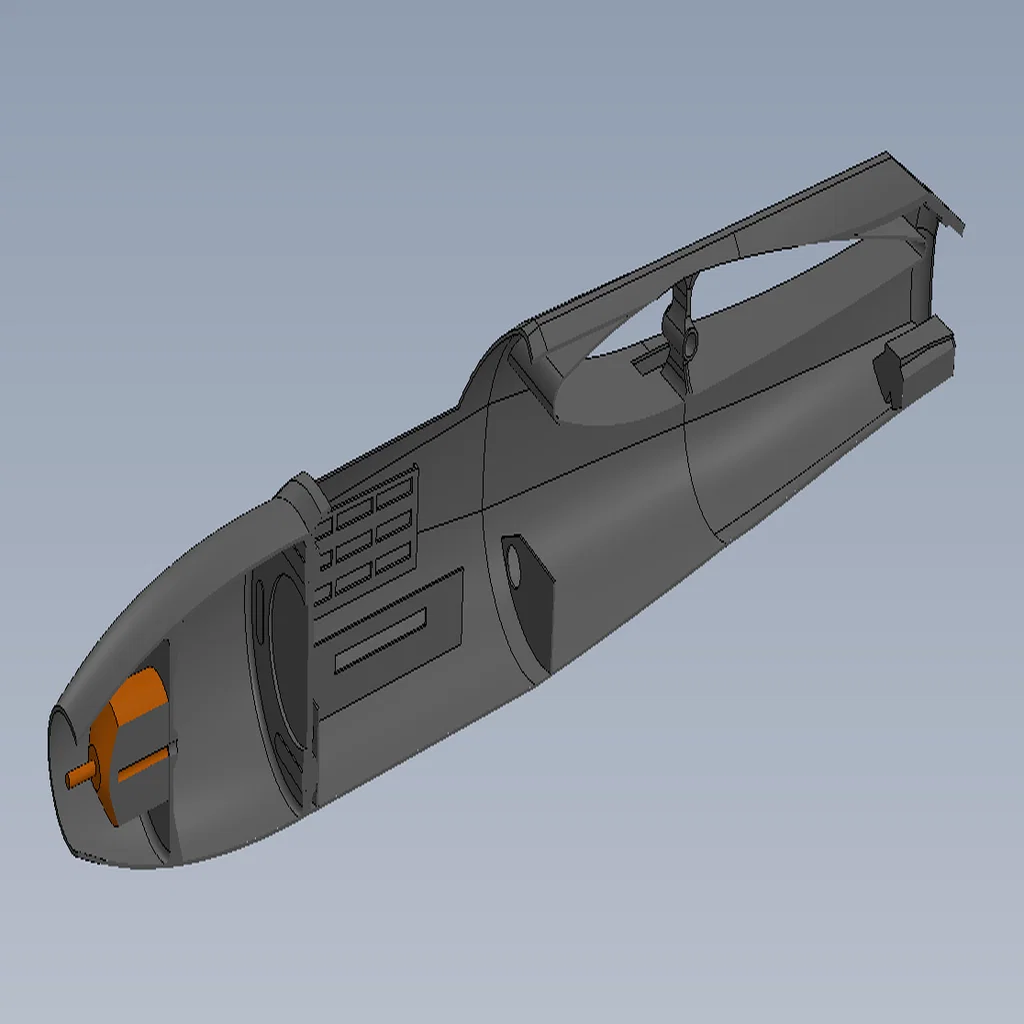 Mẫu thân (fuselage) in 3D cho RC Plane, dùng cánh SkySurfer 1400mm hoặc cánh tự gắn. Có file SolidWorks để chỉnh theo cánh. Nose in TPU chống va đập, thân Nylon PA12, gia cường carbon fiber; tổng nặng khoảng 700g.