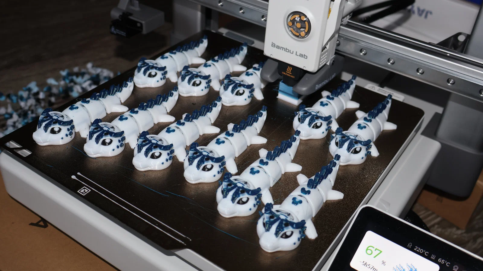 Mẫu Ice Dragon dạng khớp (articulated) với nhiều tinh thể hơn trên lưng rồng. Có link phiên bản Multicolor dành cho máy in Bambu, kèm hình minh họa và link xem bản remix mới.