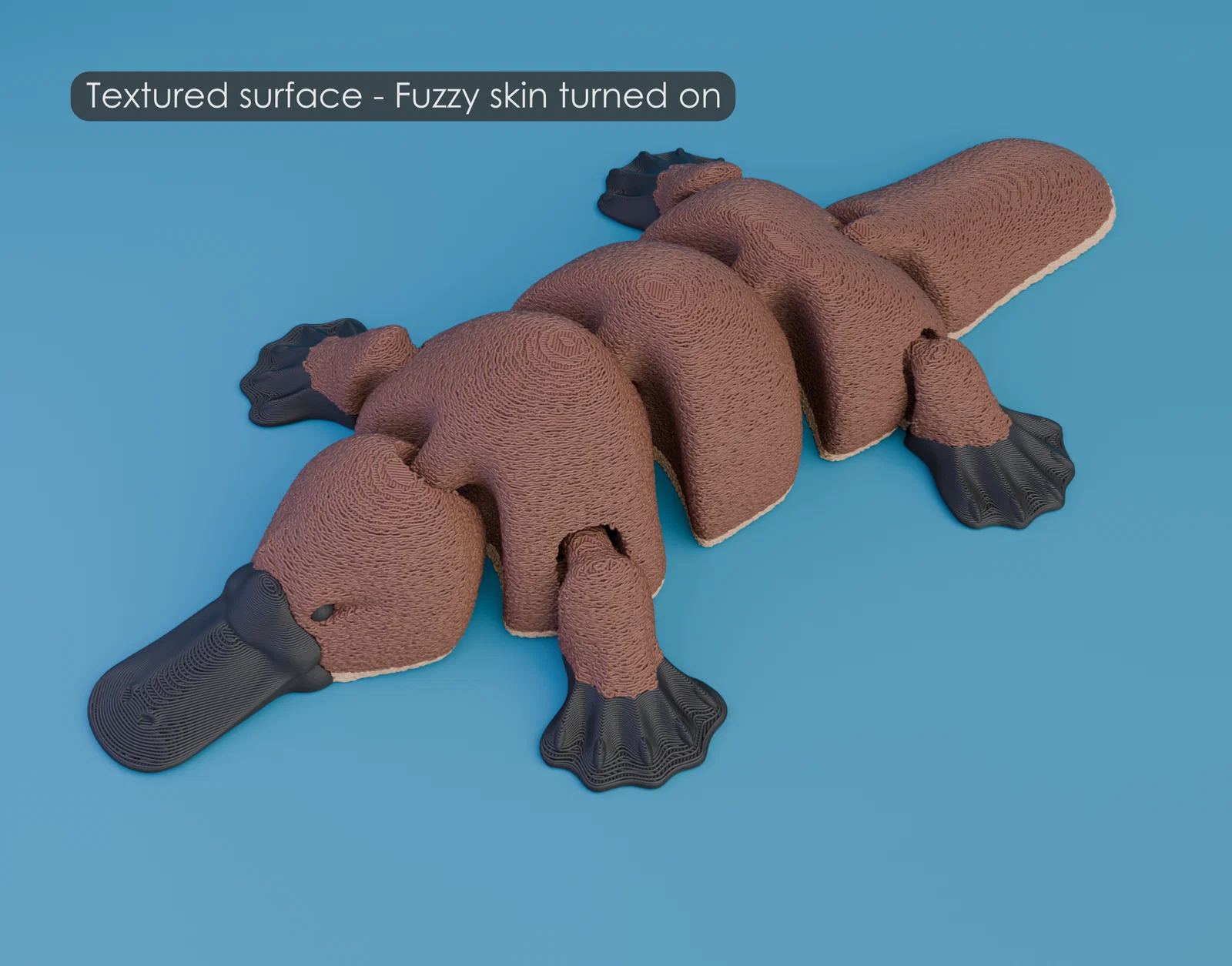 Mẫu thú mỏ vịt khớp nối dạng print in place, in xong là cử động được, không cần lắp ráp. Gồm file STL single color và multicolor cho AMS/MMU, kèm .3mf PrusaSlicer (Smooth/Fuzzy) đã gán màu sẵn.