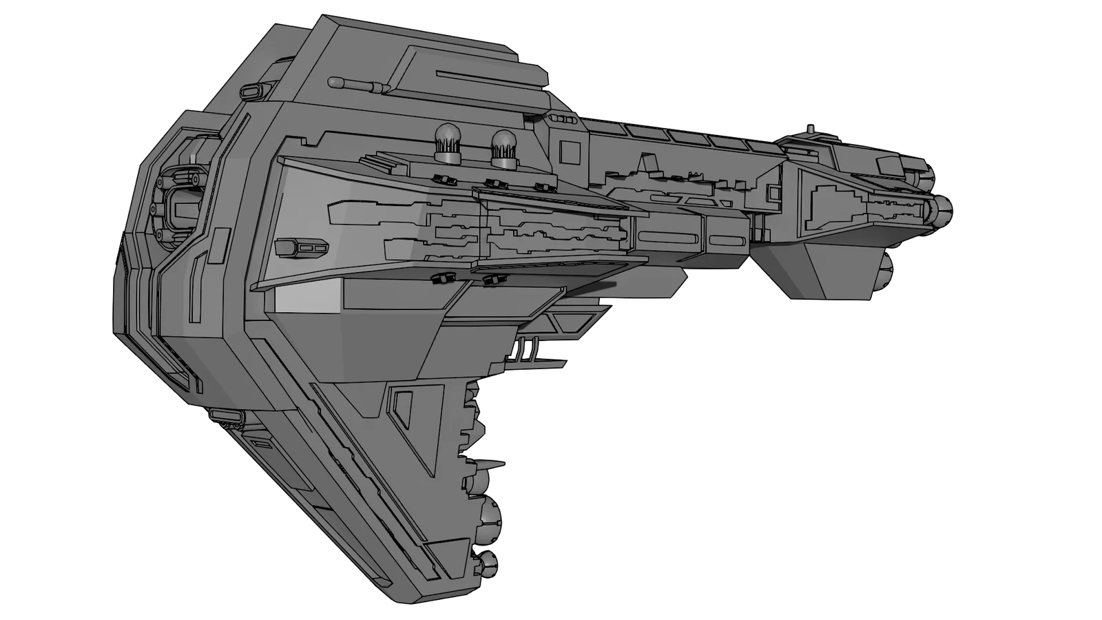 Model này ở tỉ lệ 1:10,000. Kích thước dài 24cm, cao 11.3cm và rộng 8cm. File được cắt thành hai phần để in: “starhawk_bow” và “starhawk_stern”, kèm “starhawk_connector” để nối lại. ("starhawk_full.stl" là bản đầy đủ, không cắt.)