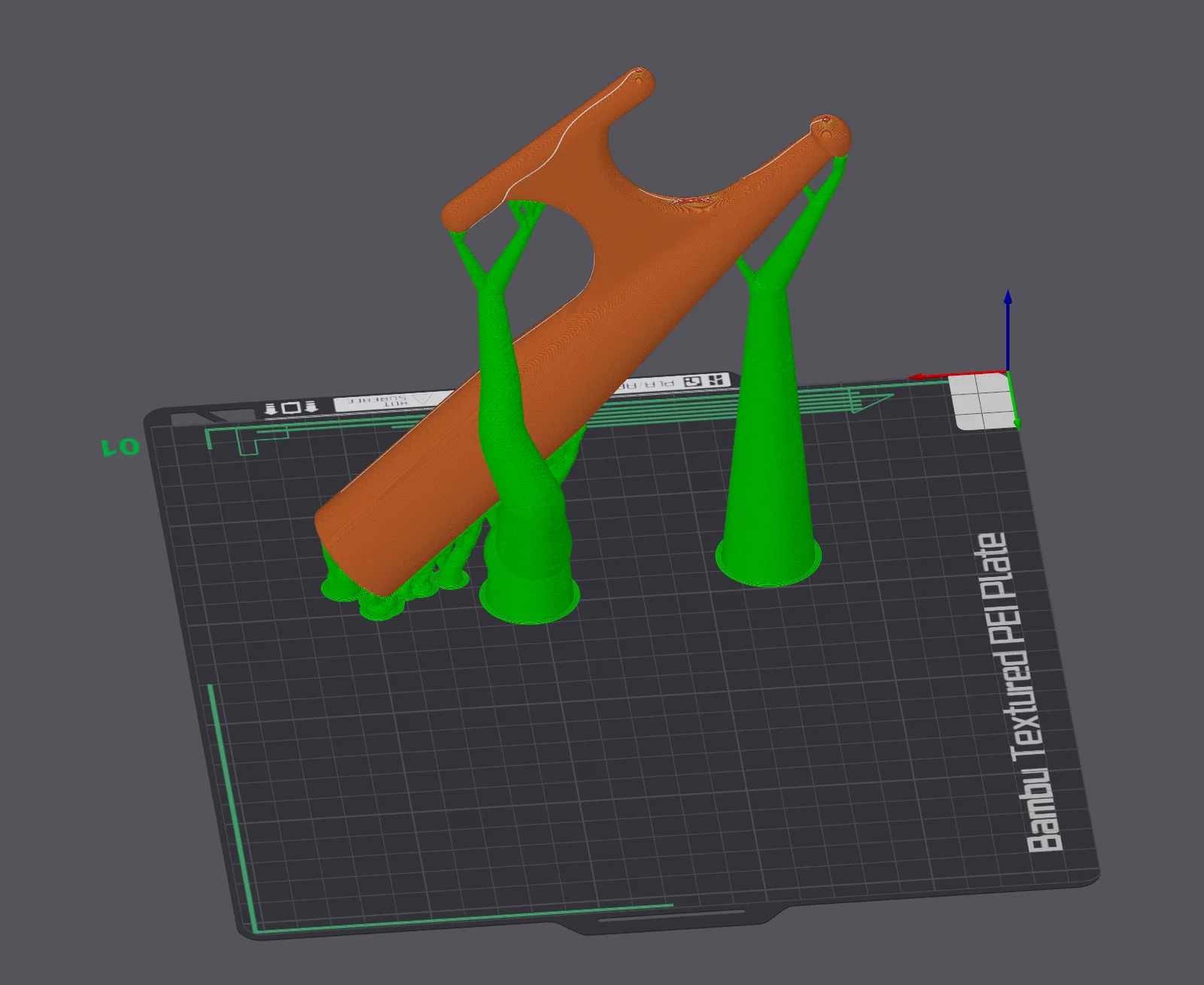 Nên in đặc (100% infill) ở góc 45 độ và dùng supports để đạt độ bền tối đa. Cách này tránh in dựng đứng làm lộ layer lines tại vị trí dễ bị lực cắt (shear force) lớn.