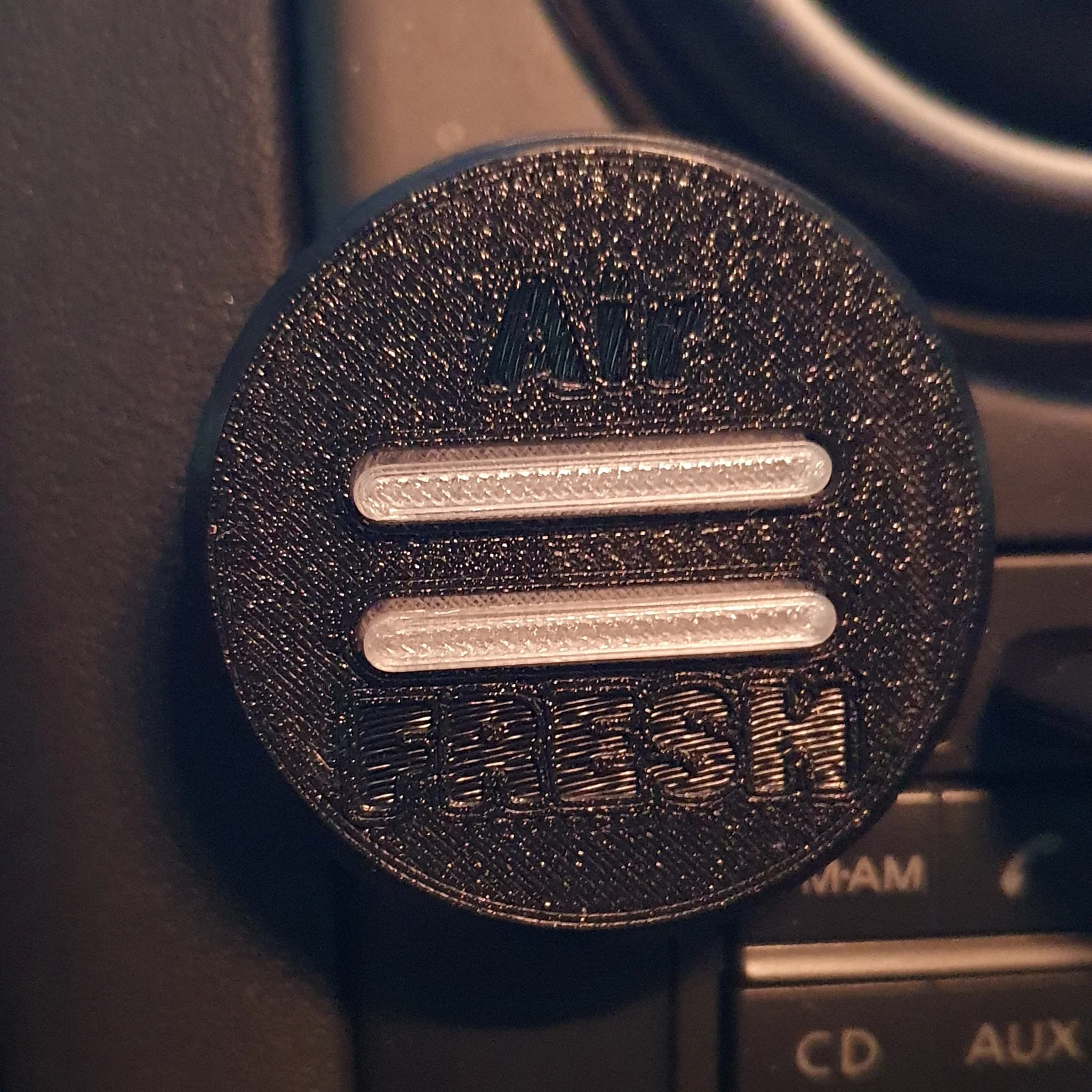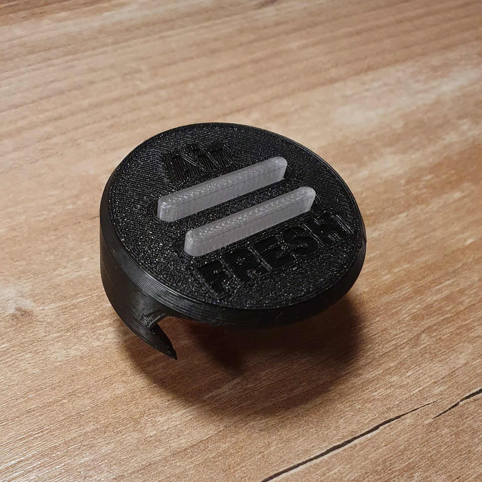 Khi in thì đặt úp mặt bụng xuống. Nút bấm in bằng filament Transparent. Hai cái gờ (steg) nằm đúng ngay phía trên các LED. Mình đã in màu đen, nhìn trên bảng táp-lô sẽ ít bị chú ý hơn.