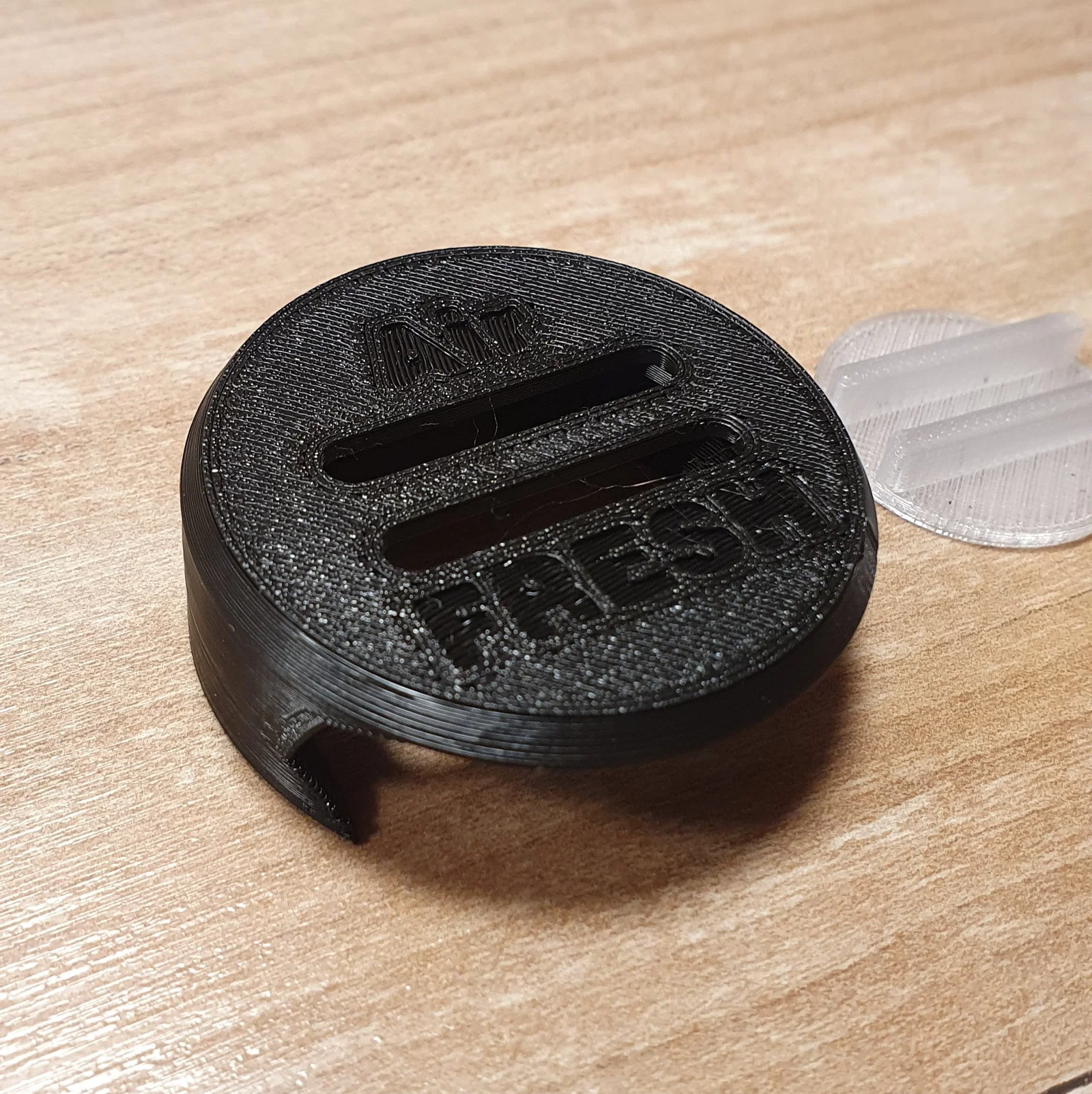 Cover cho ooono, thiết kế dạng ngụy trang như Air Fresh để gắn trên taplo mà ít bị chú ý. Hướng dẫn in: đặt úp mặt bụng, nút bấm dùng filament Transparent; hai gờ canh đúng vị trí LED.